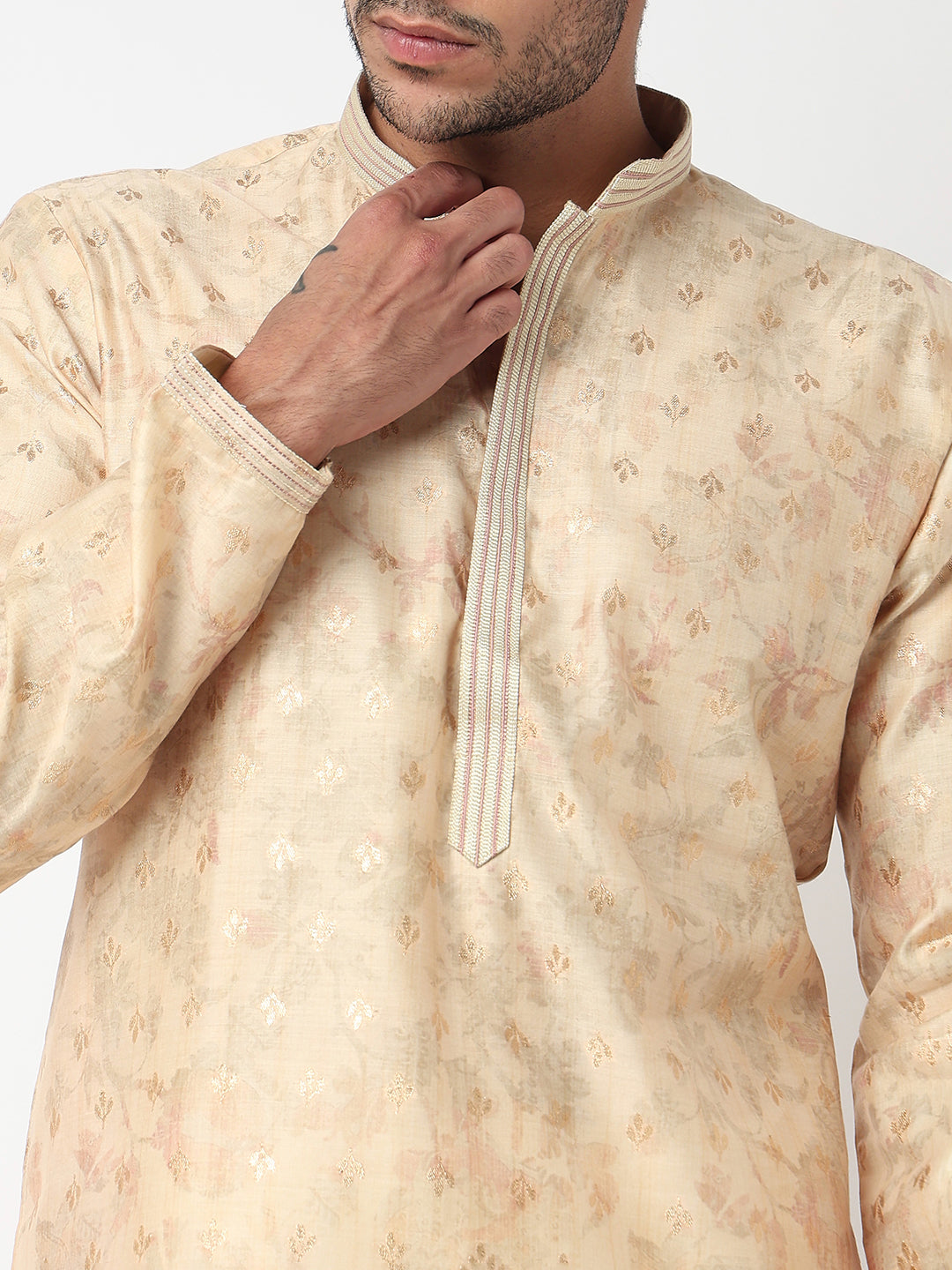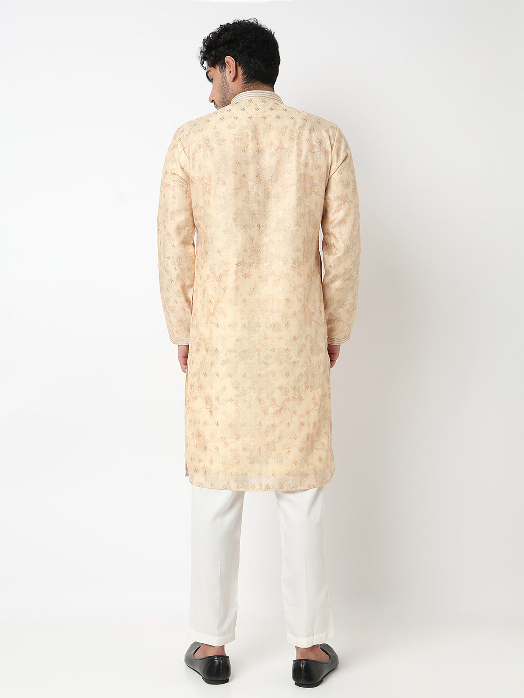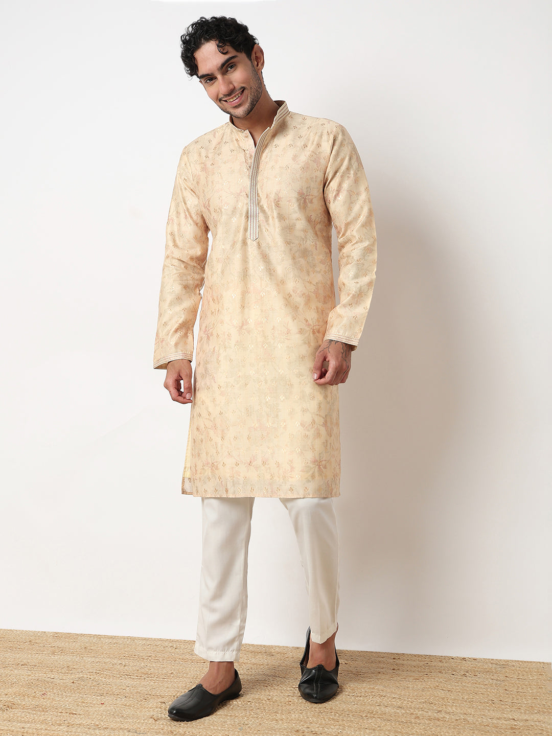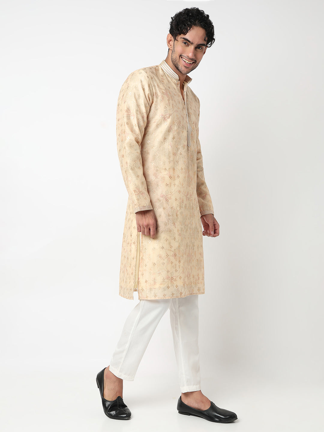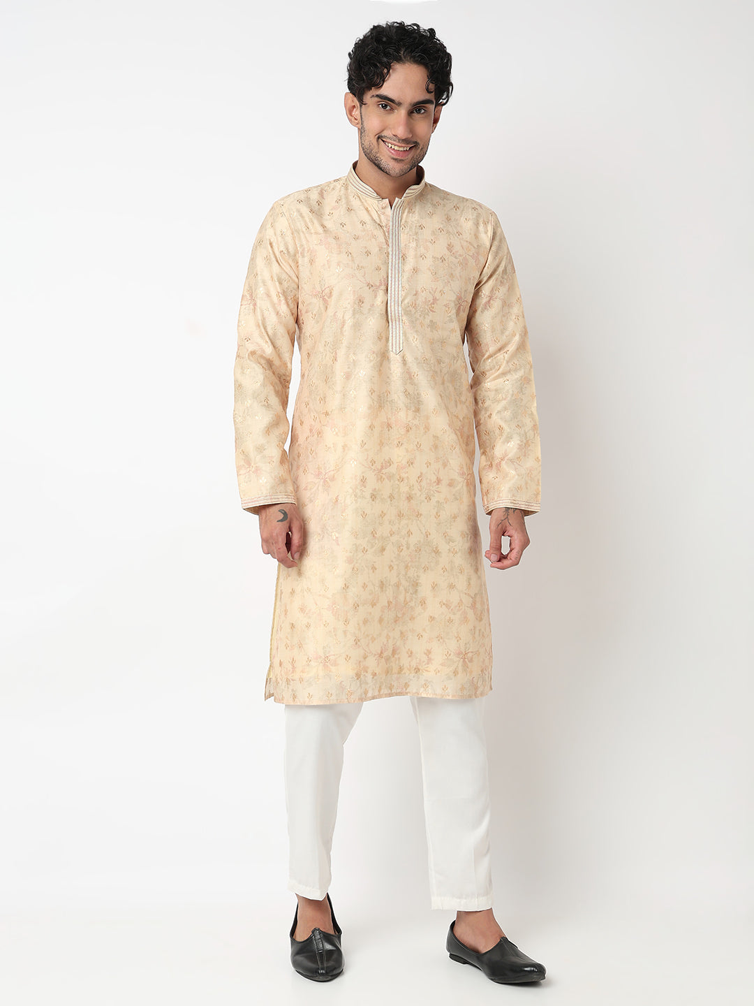This digital print pattern kurta with pant set has a mandarin collar and full sleeve. Made from polyester, it is soft and comfortable to wear.