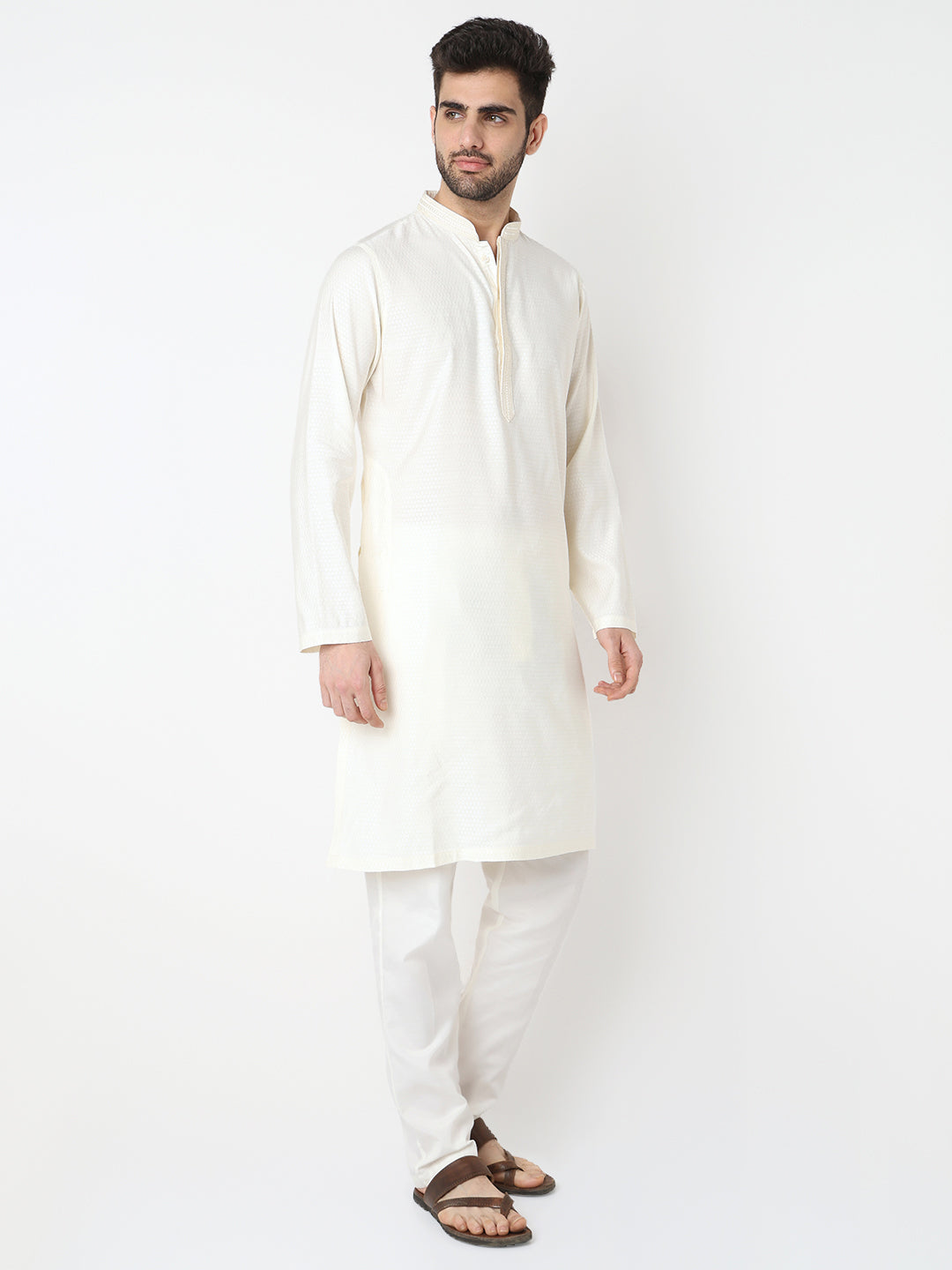 This jacquard pattern kurta has a mandarin collar and full sleeve. Made from viscose polyester, it is soft and comfortable to wear.