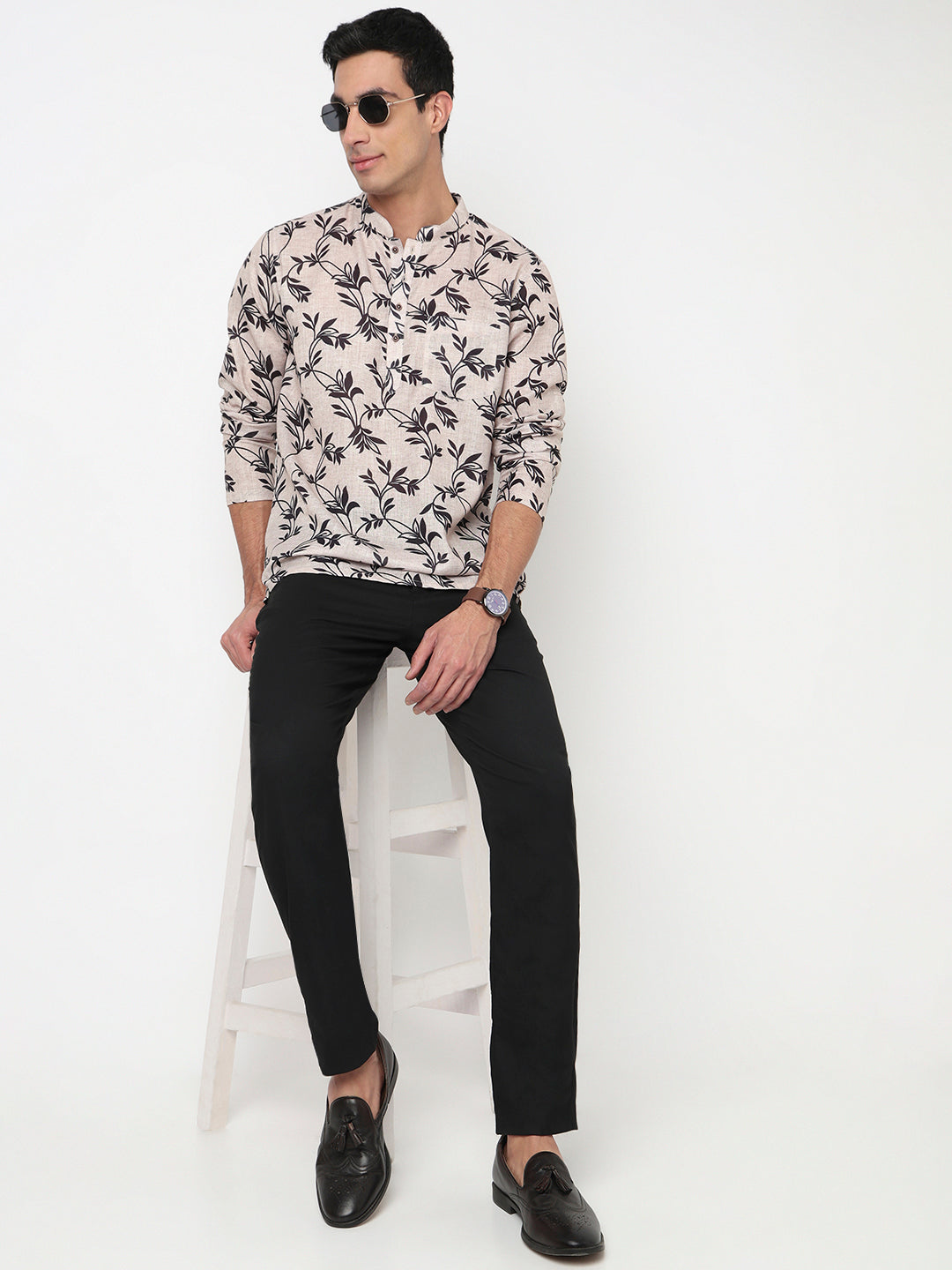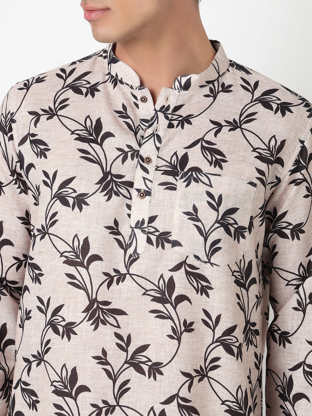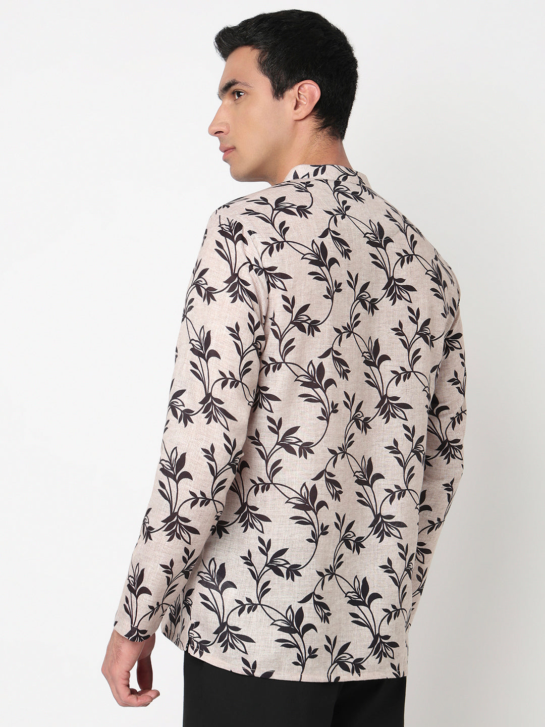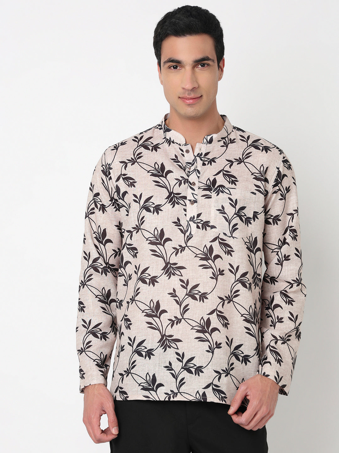 This printed pattern kurta has a mandarin collar and full sleeve. Made from poly linen, it is soft and comfortable to wear.