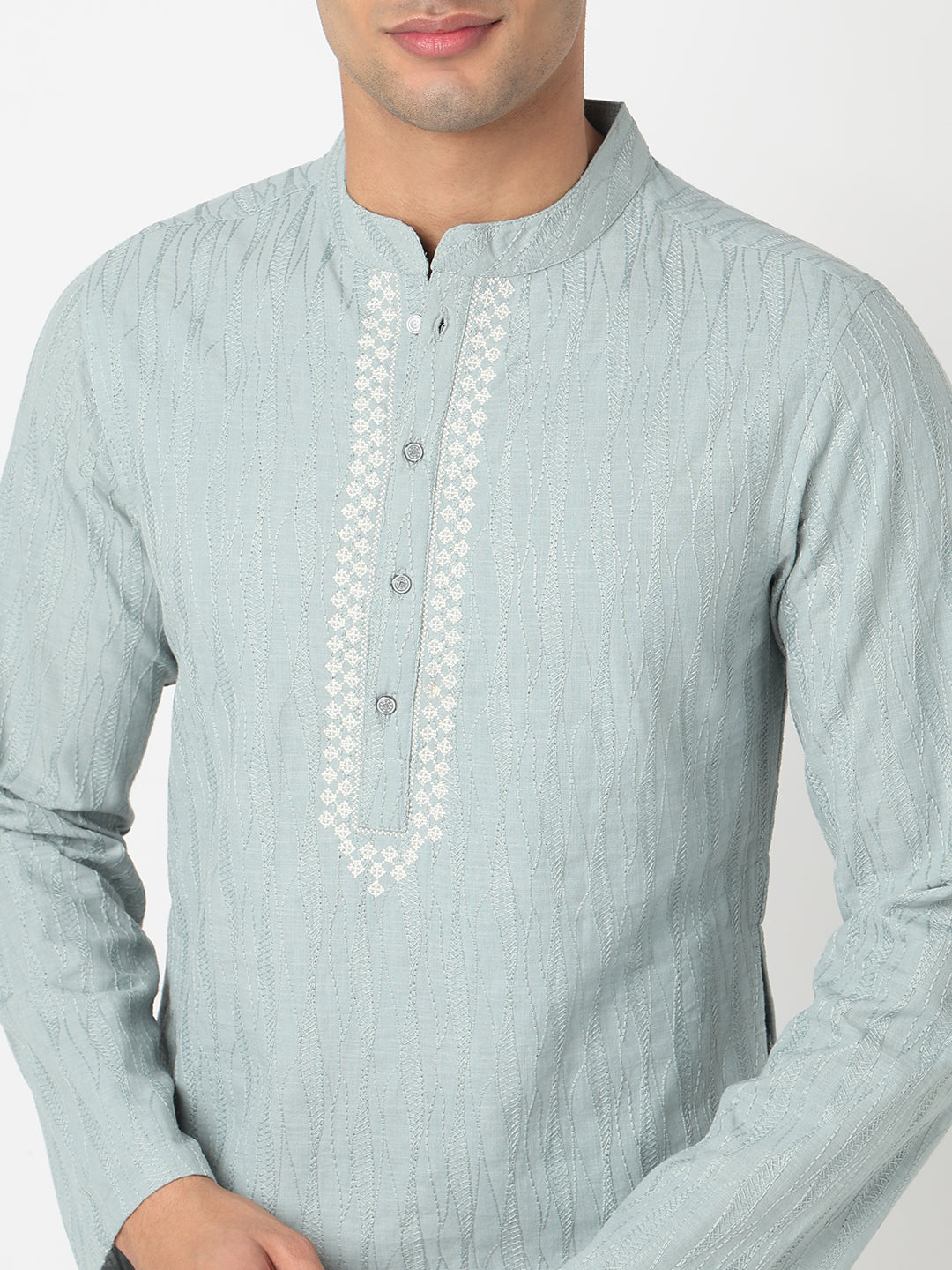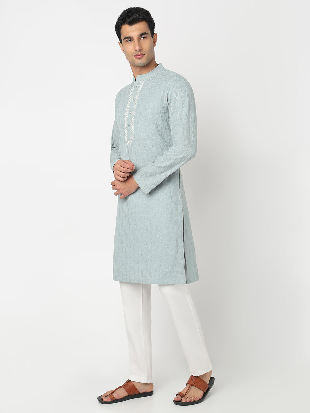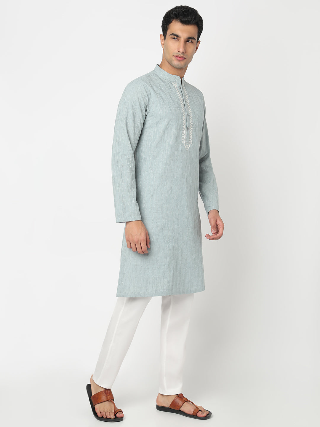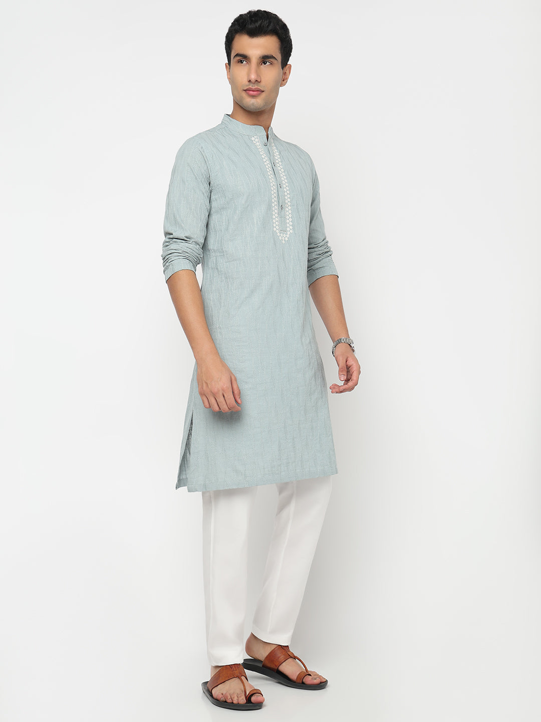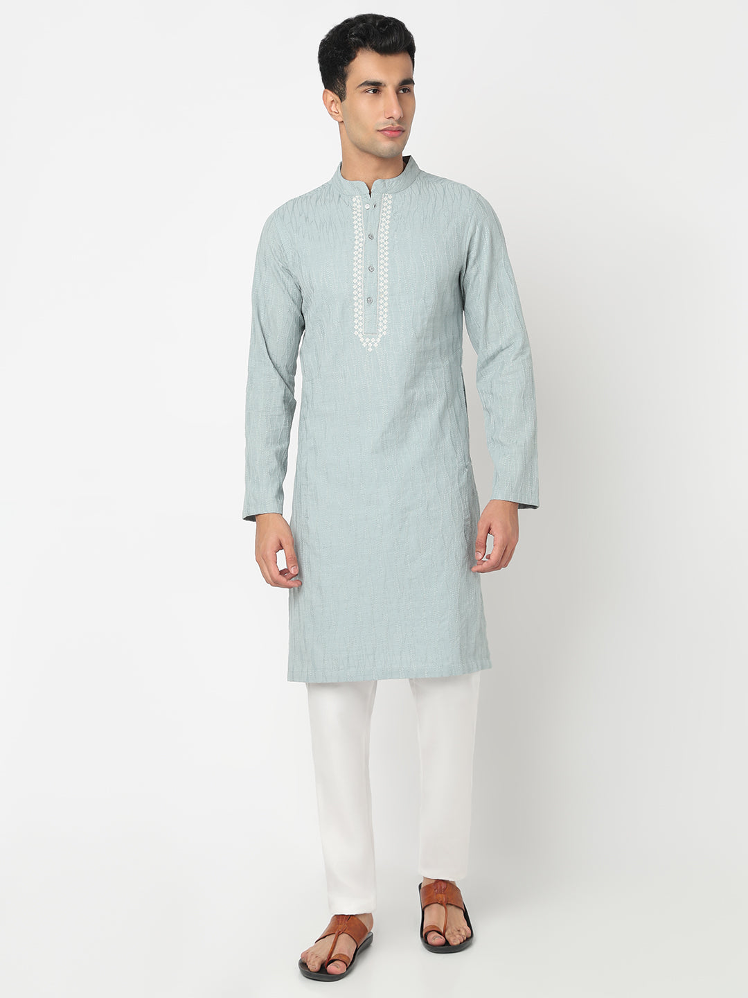 This embroidered pattern kurta has a mandarin collar and full sleeve. Made from cotton, it is soft and comfortable to wear.