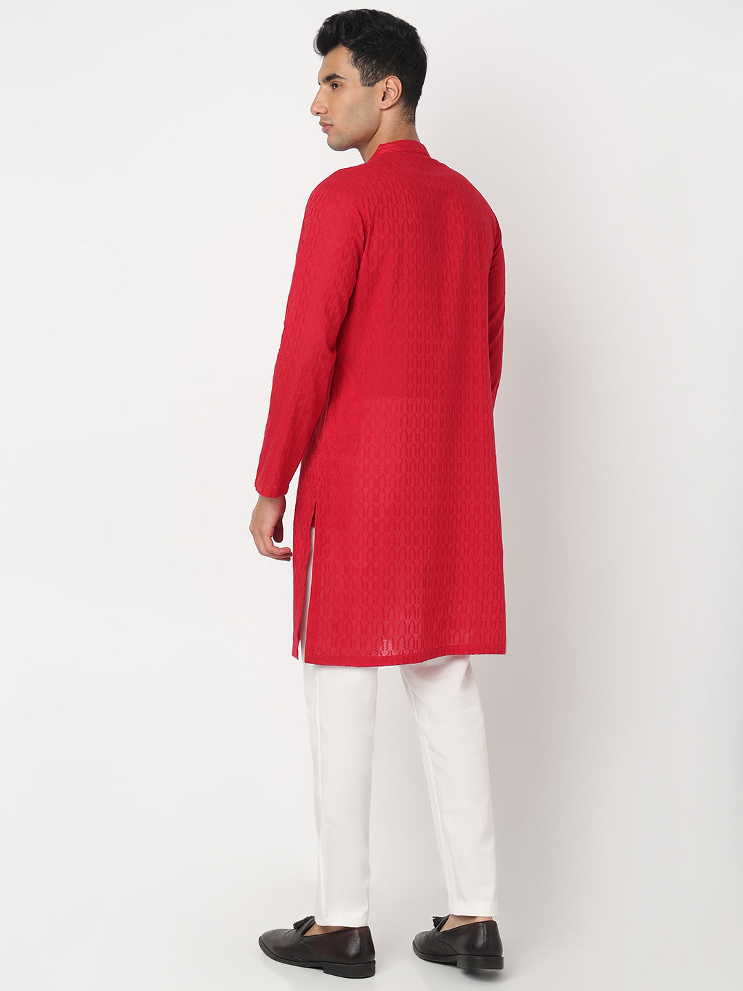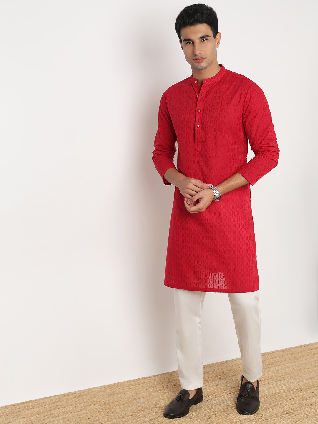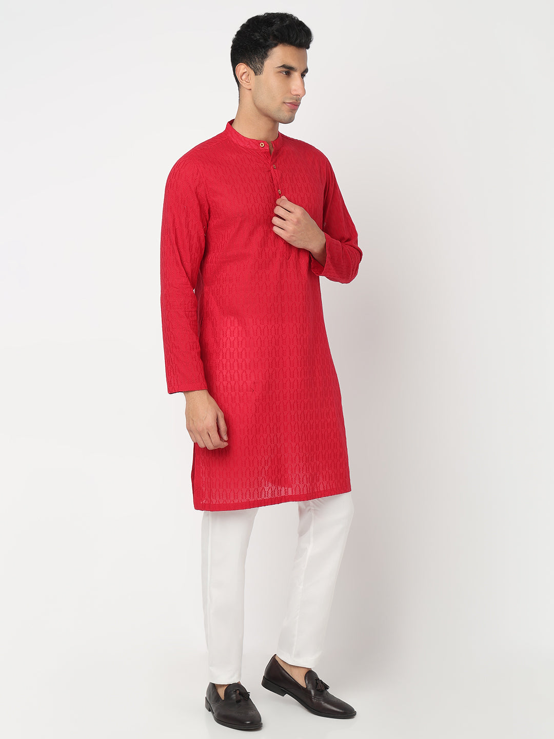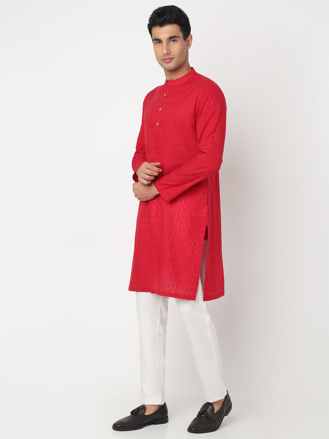 This lapet pattern kurta has a mandarin collar and full sleeve. Made from cotton, it is soft and comfortable to wear.