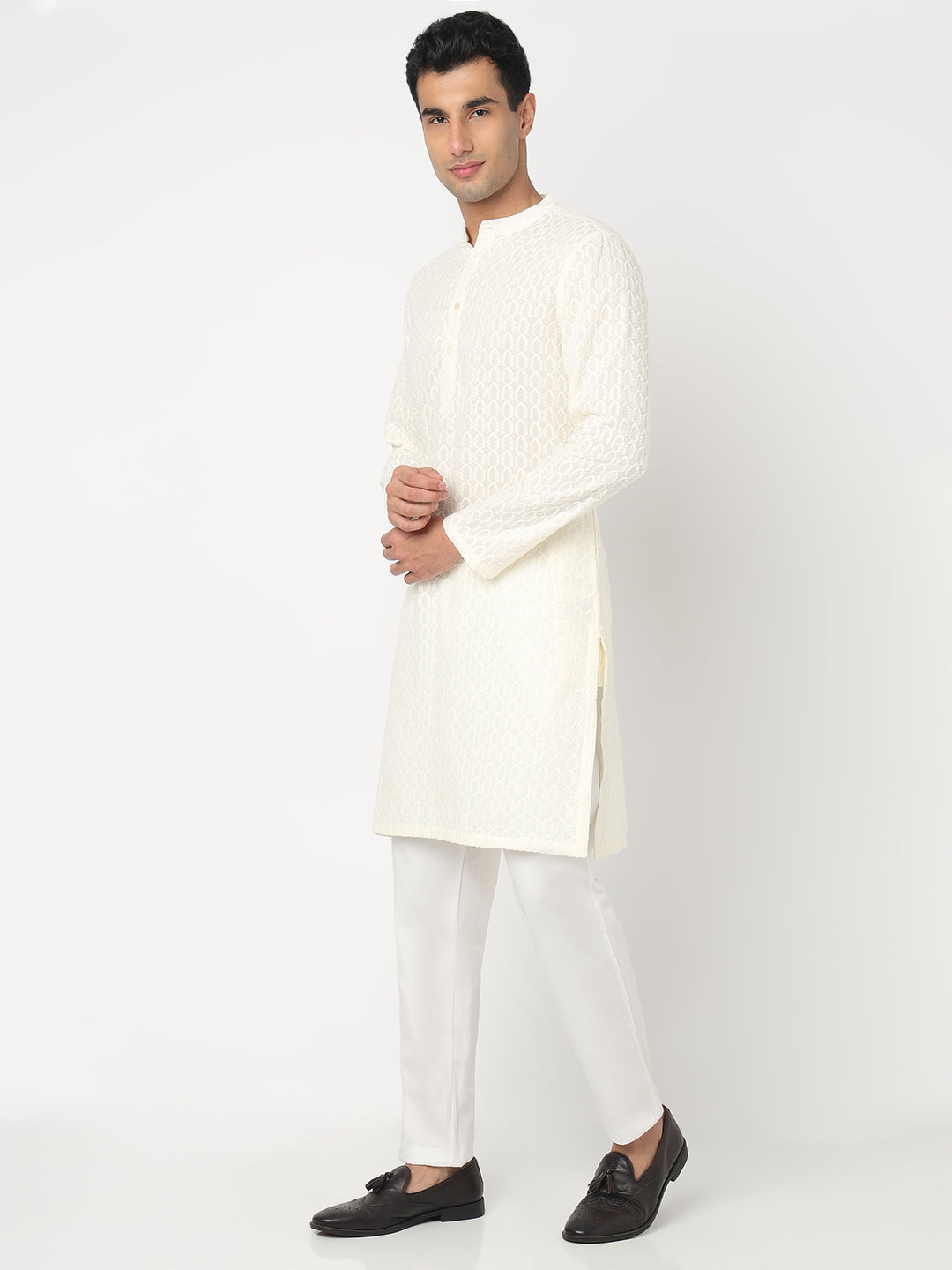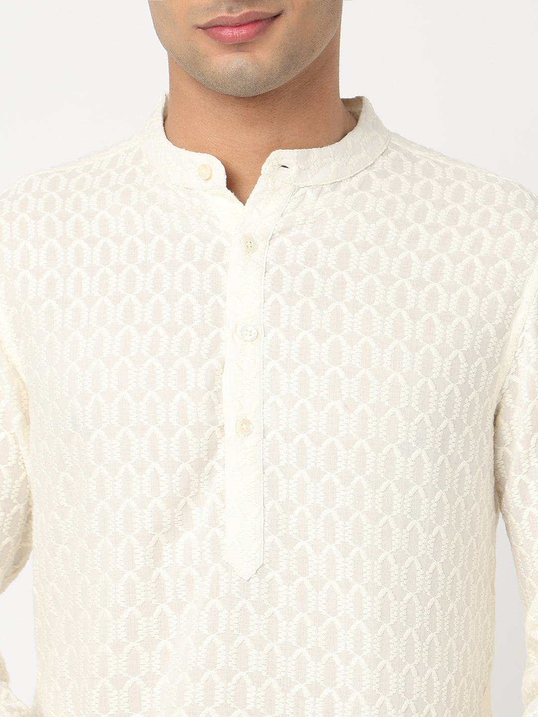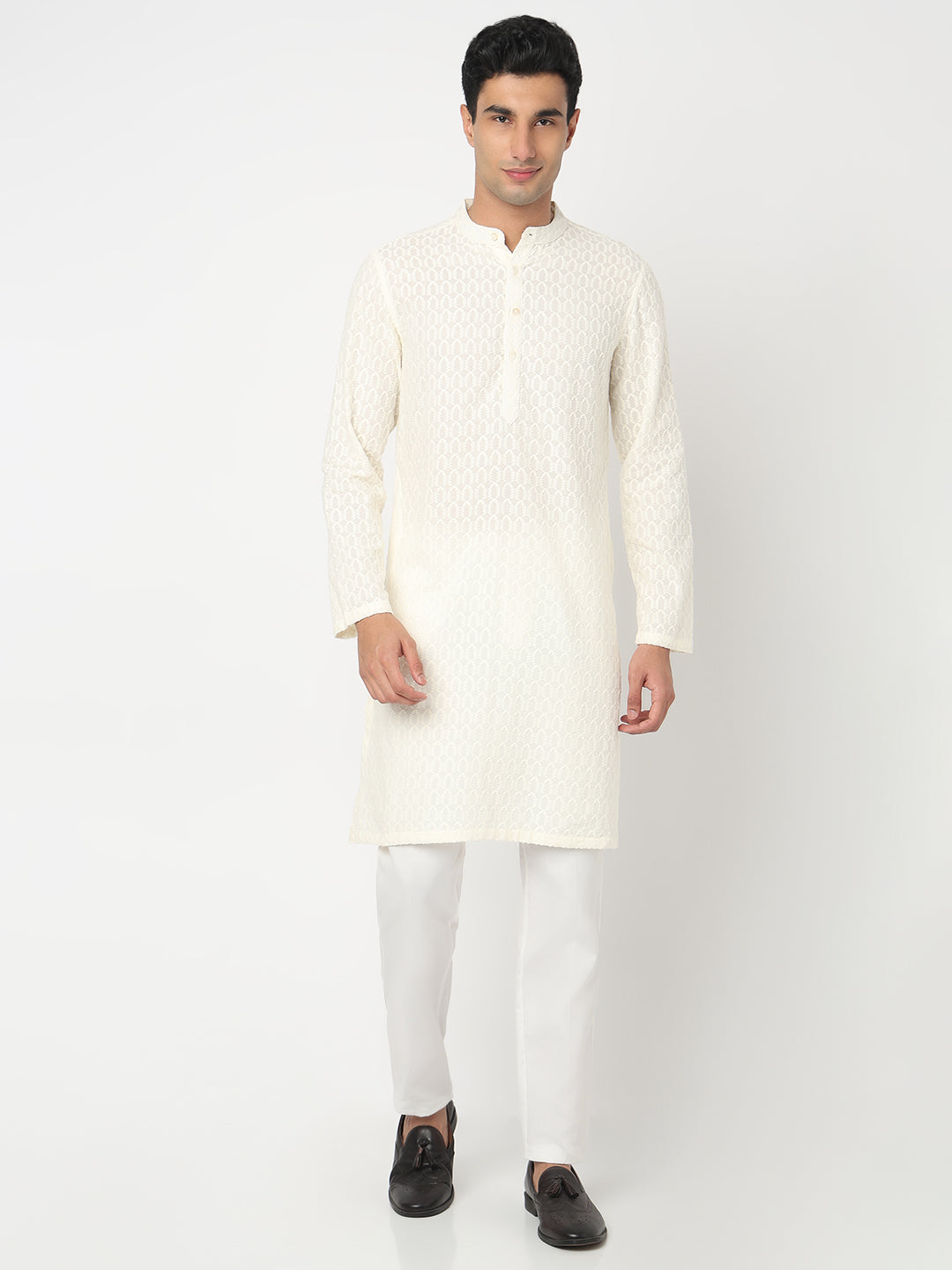 This lapet pattern kurta has a mandarin collar and full sleeve. Made from cotton, it is soft and comfortable to wear.