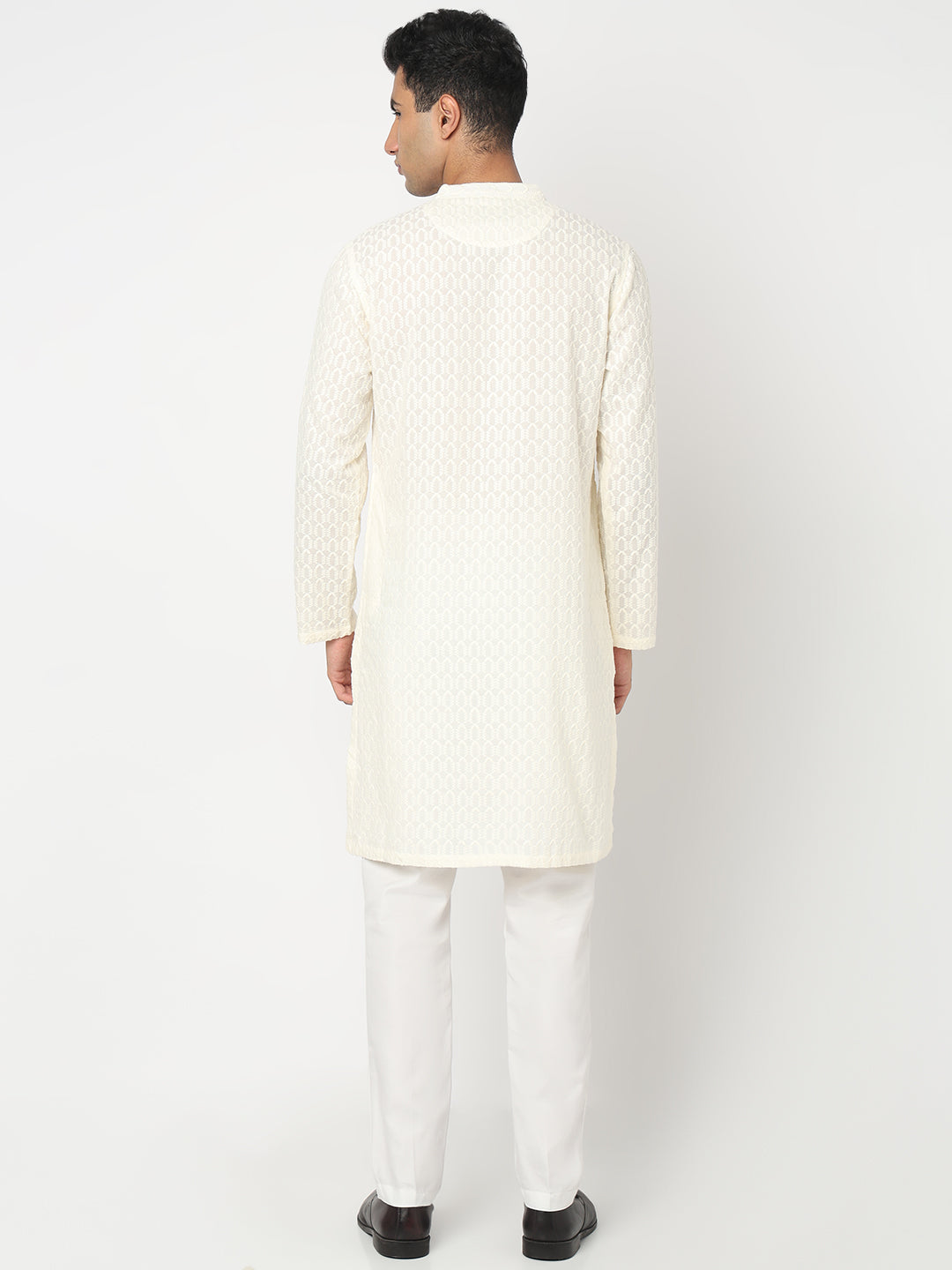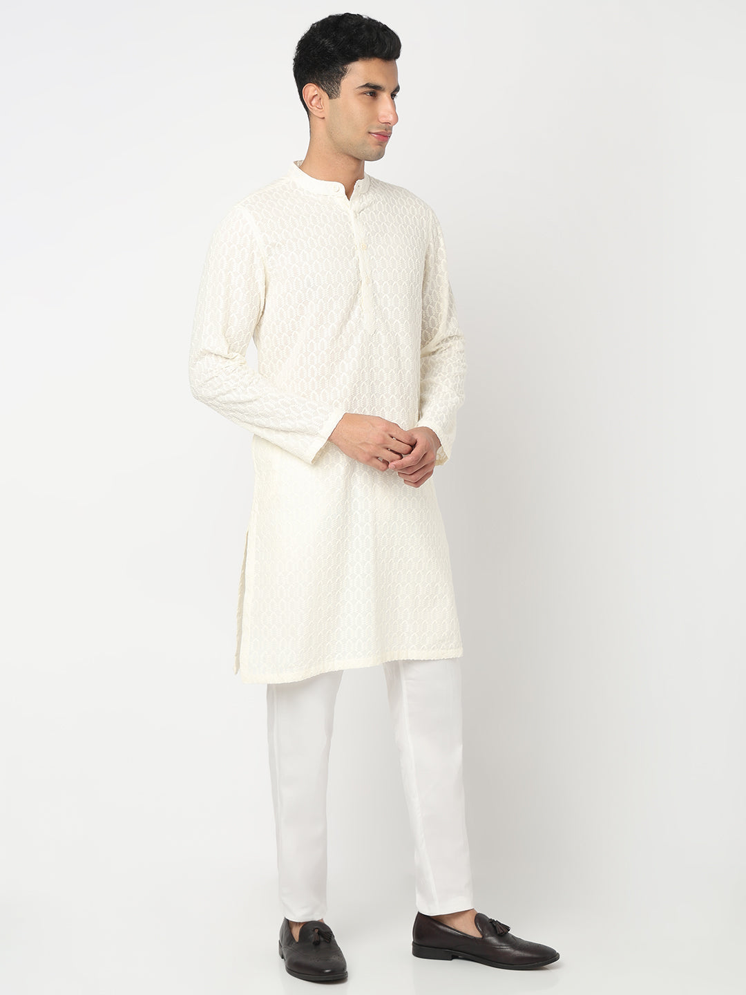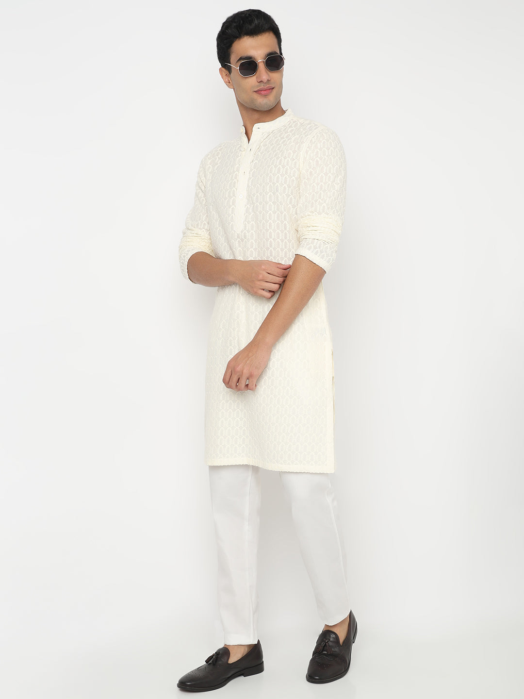 This lapet pattern kurta has a mandarin collar and full sleeve. Made from cotton, it is soft and comfortable to wear.
