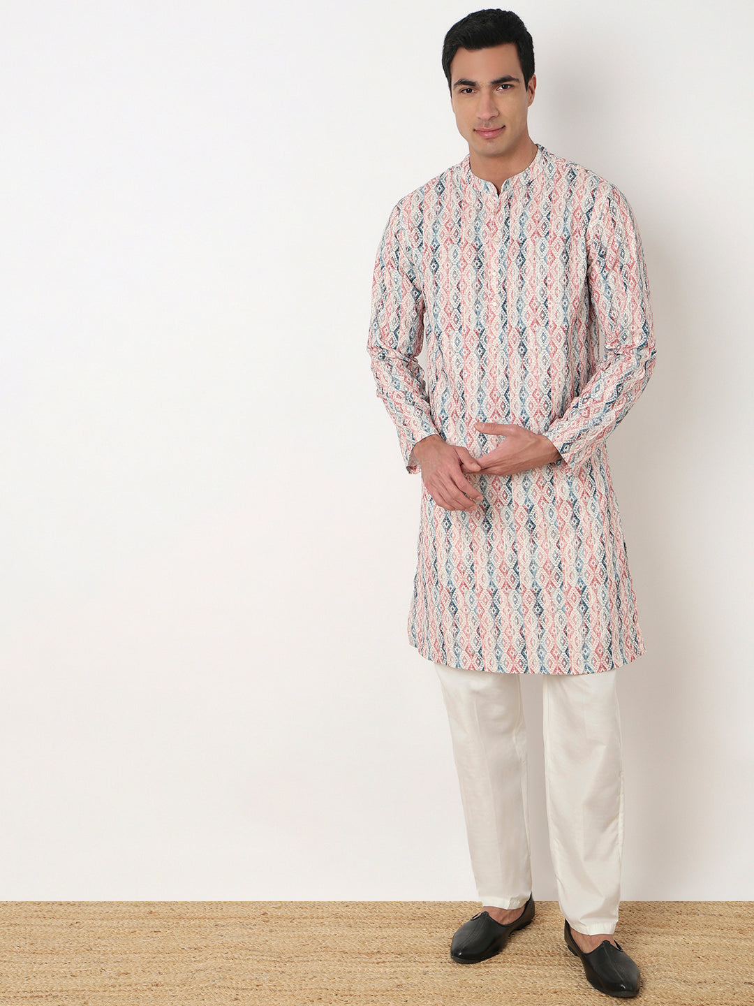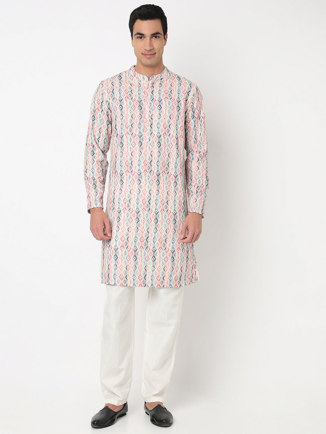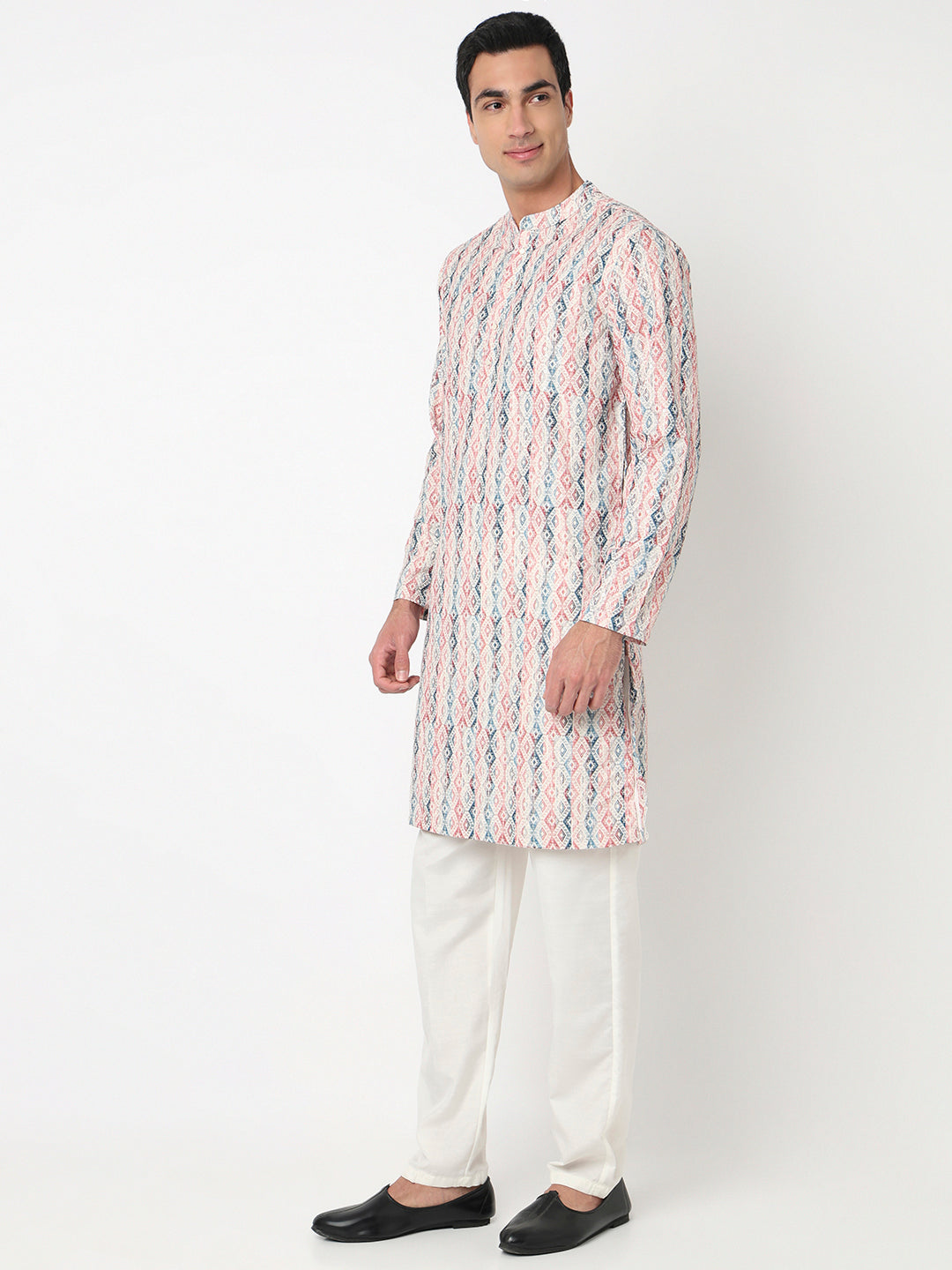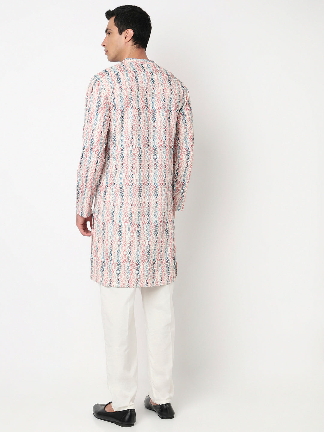 This digital printed pattern kurta has a mandarin collar and full sleeve. Made from polyester, it is soft and comfortable to wear.