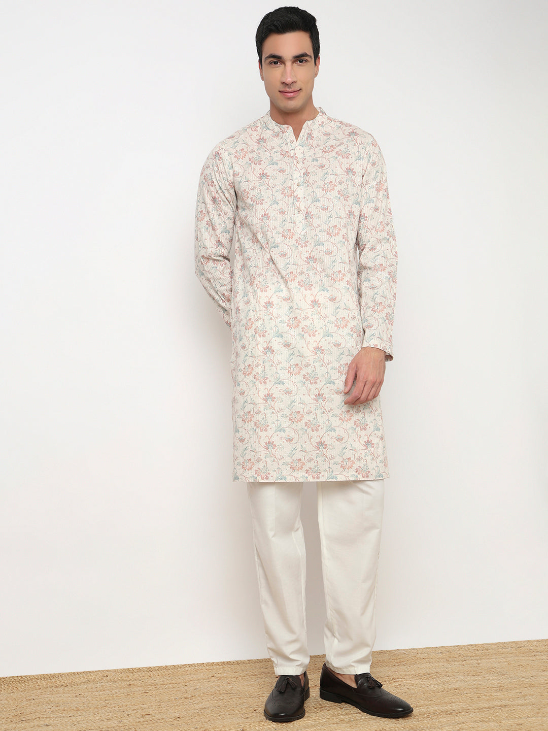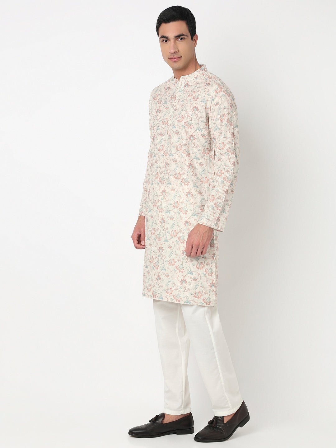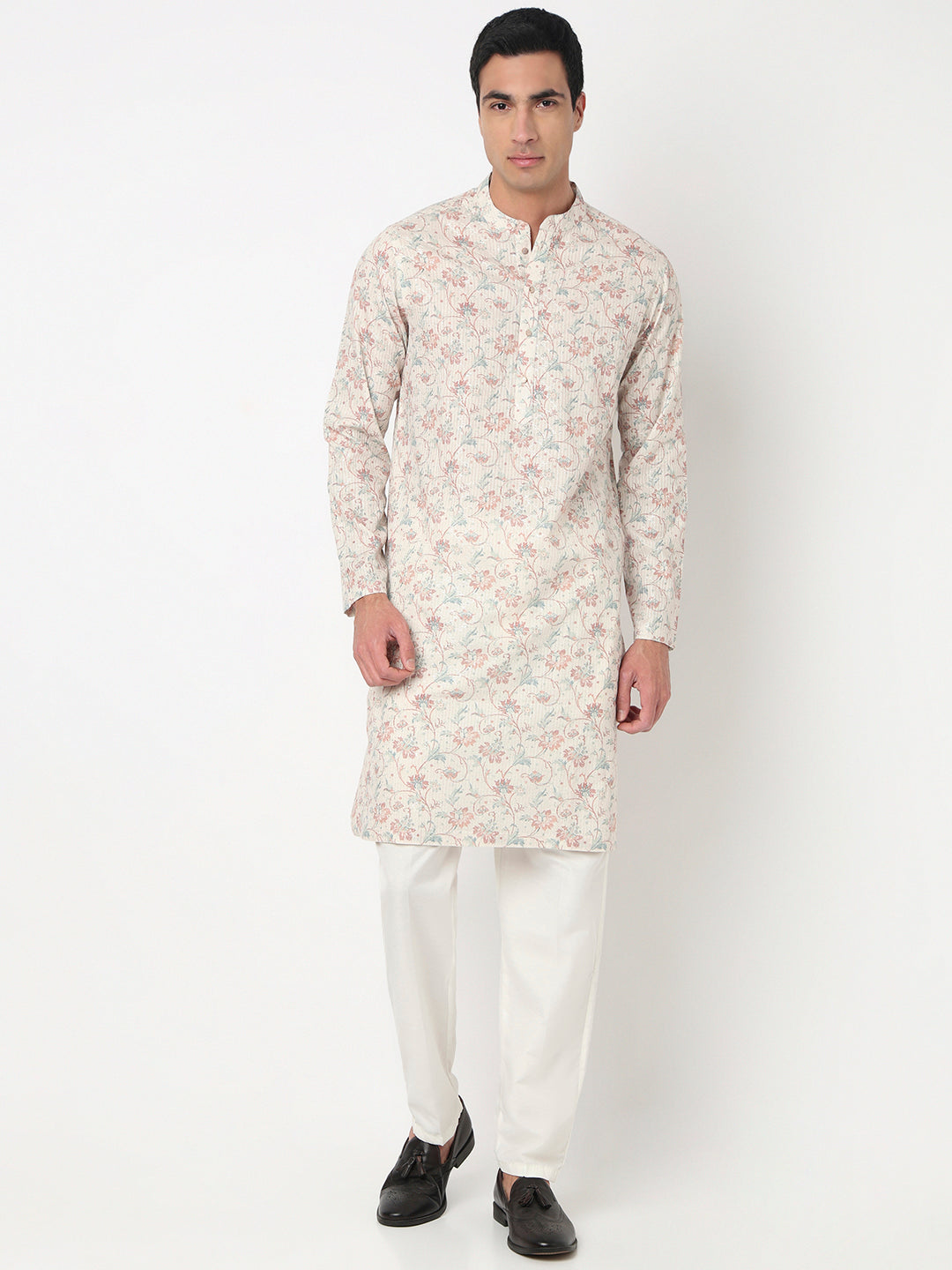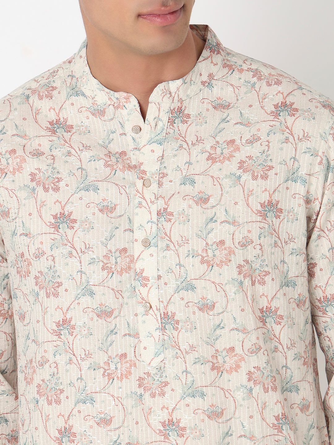 This digital printed pattern kurta has a mandarin collar and full sleeve. Made from polyester, it is soft and comfortable to wear.