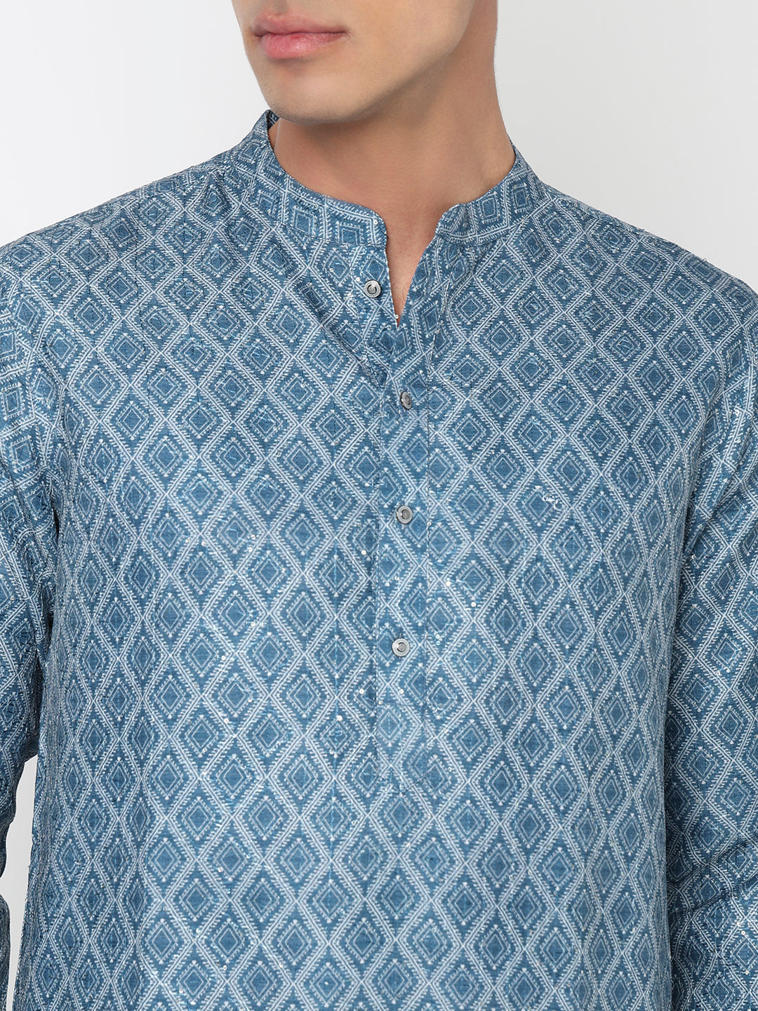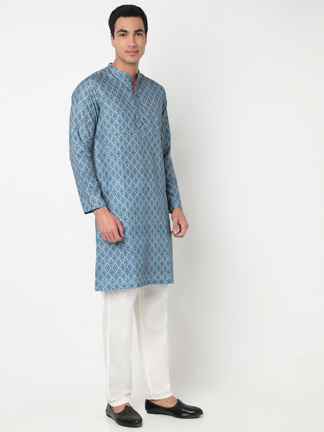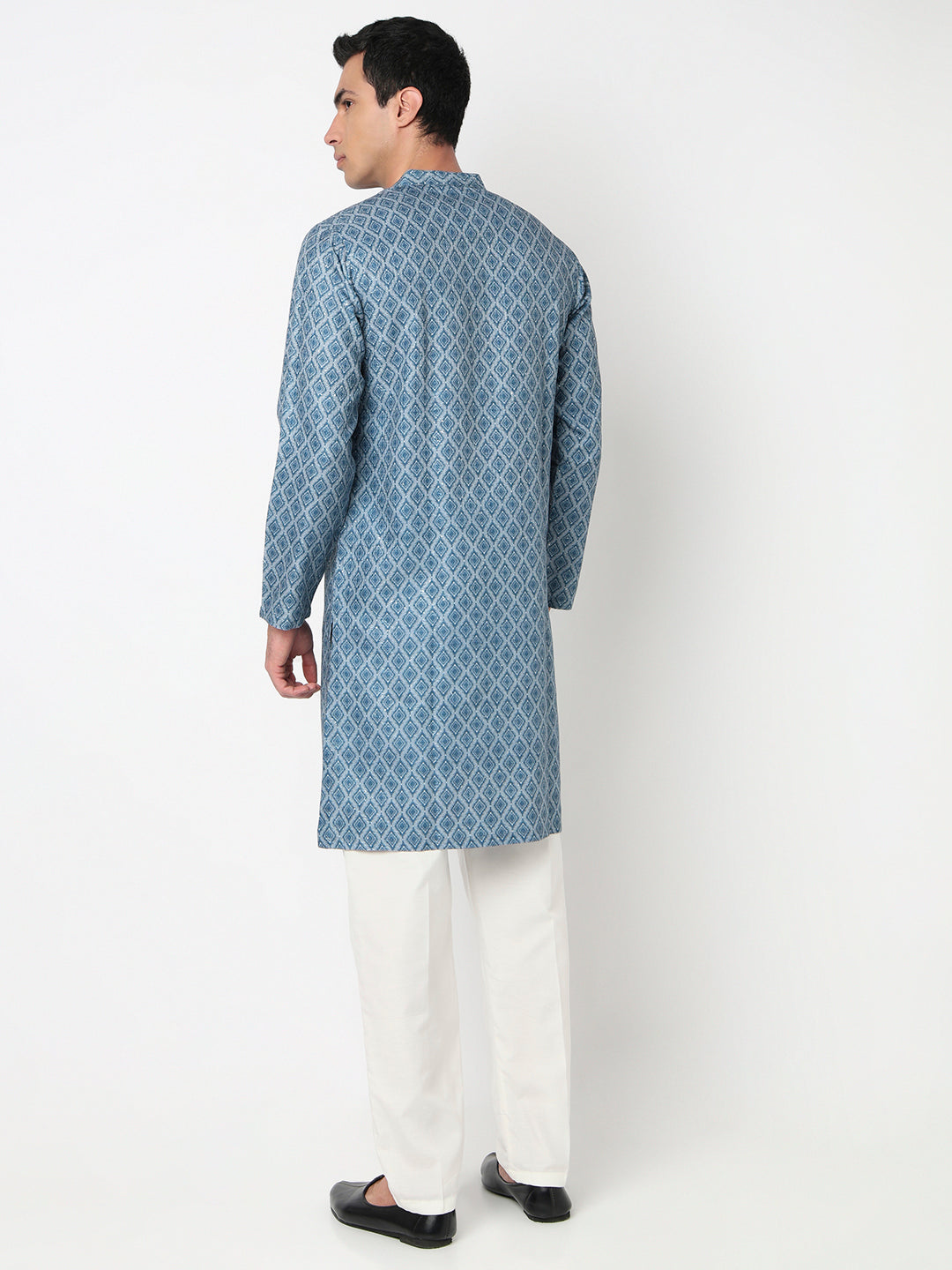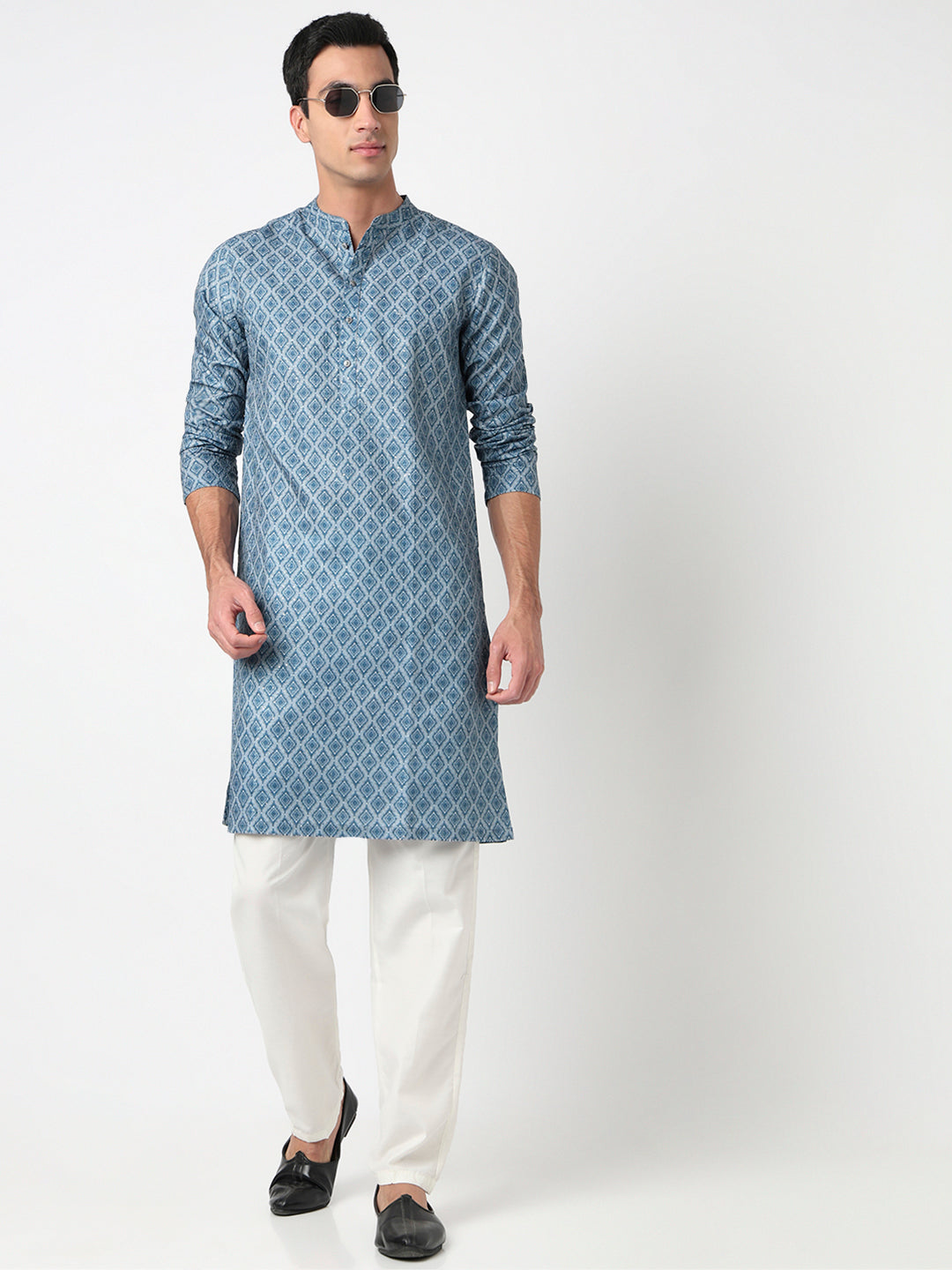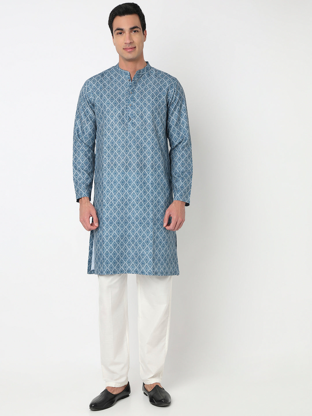 This digital printed pattern kurta has a mandarin collar and full sleeve. Made from polyester, it is soft and comfortable to wear.