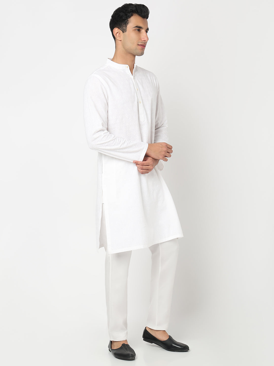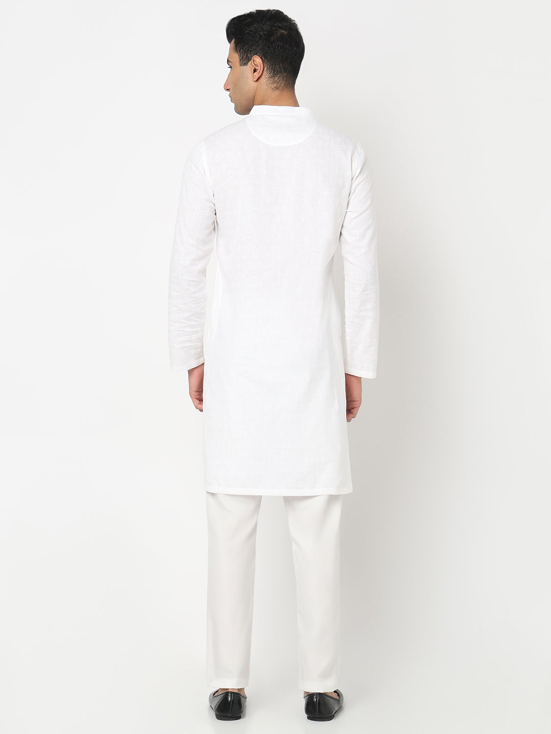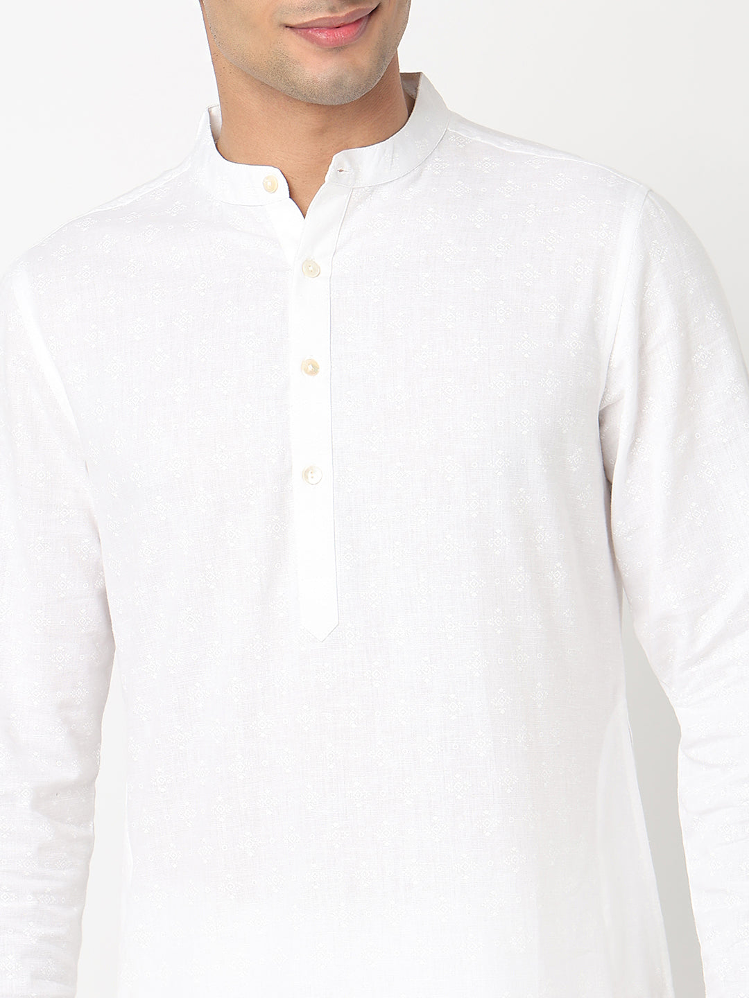 This printed pattern kurta has a mandarin collar and full sleeve. Made from viscose cotton flex, it is soft and comfortable to wear.