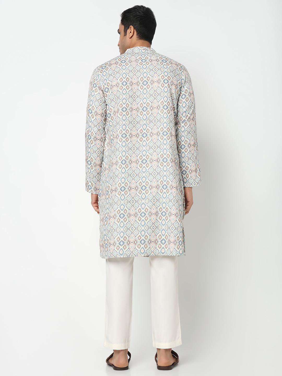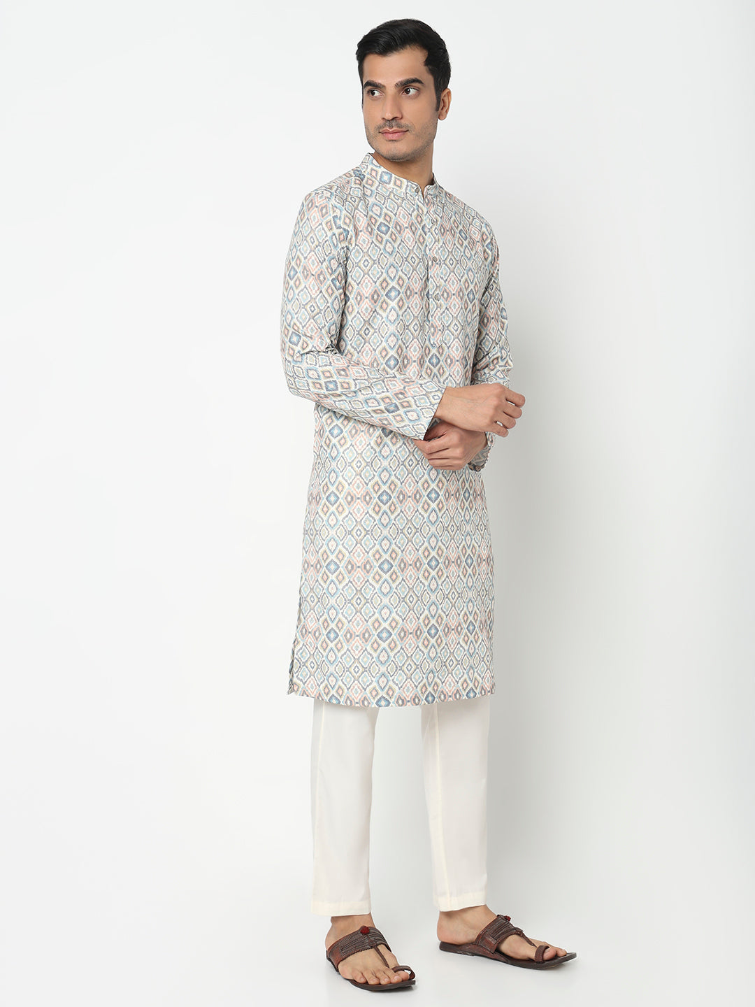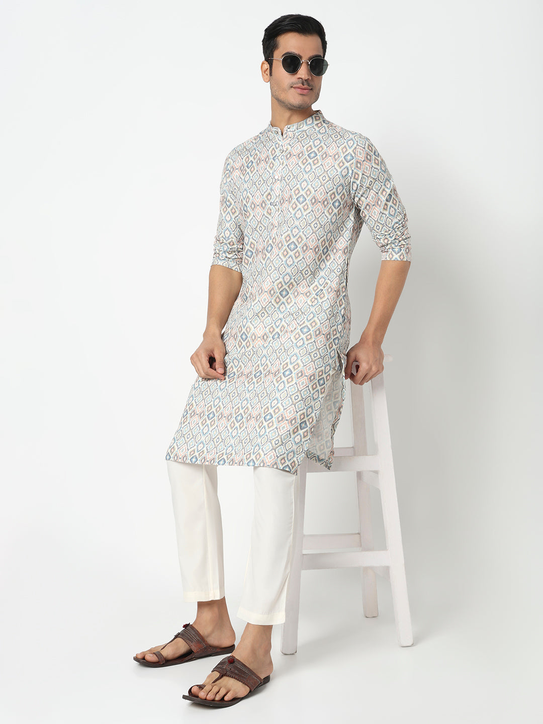 This digital printed pattern kurta has a mandarin collar and full sleeve. Made from polyester, it is soft and comfortable to wear.