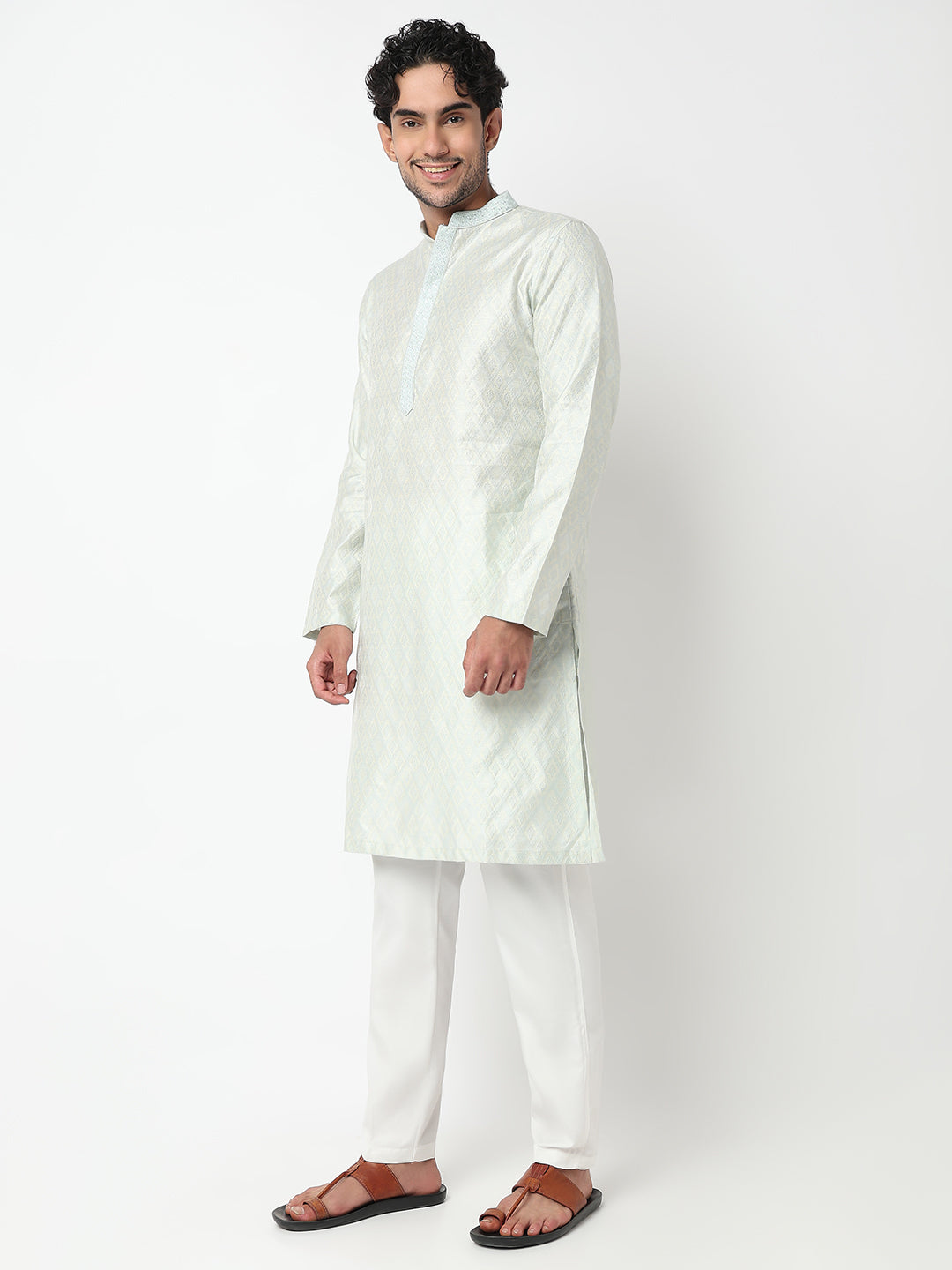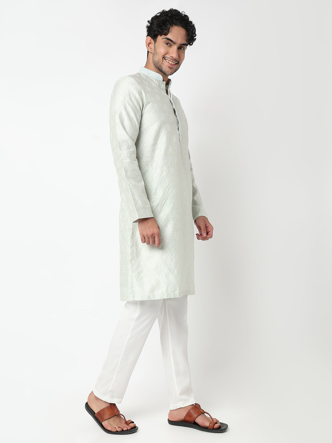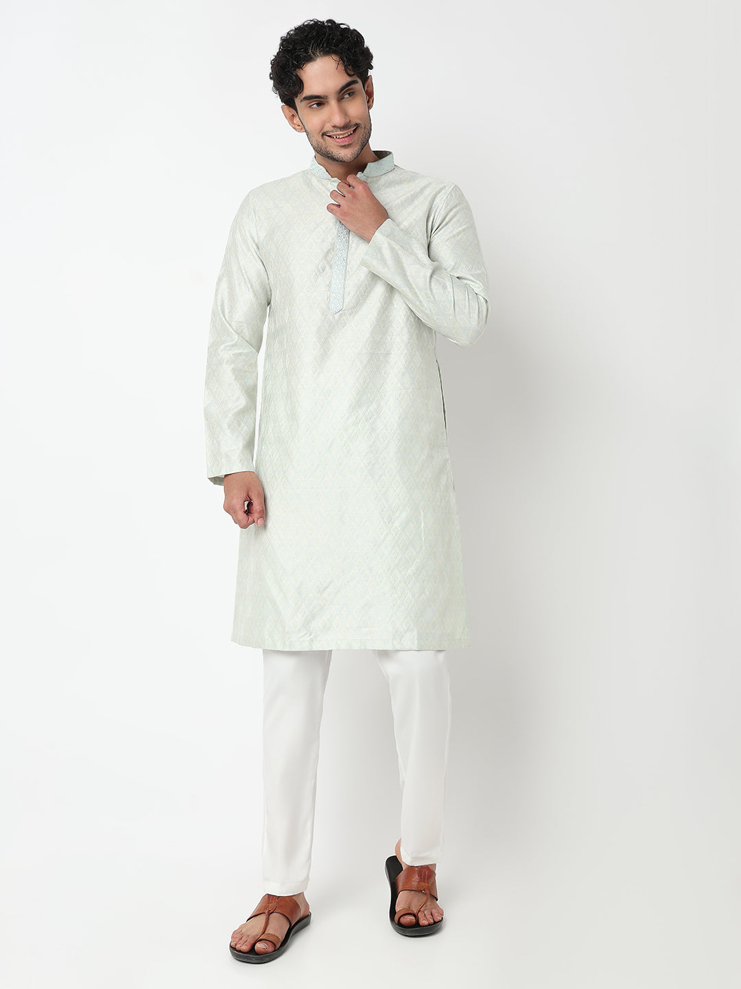 This jacquard pattern kurta has a mandarin collar and full sleeve. Made from polyester, it is soft and comfortable to wear.