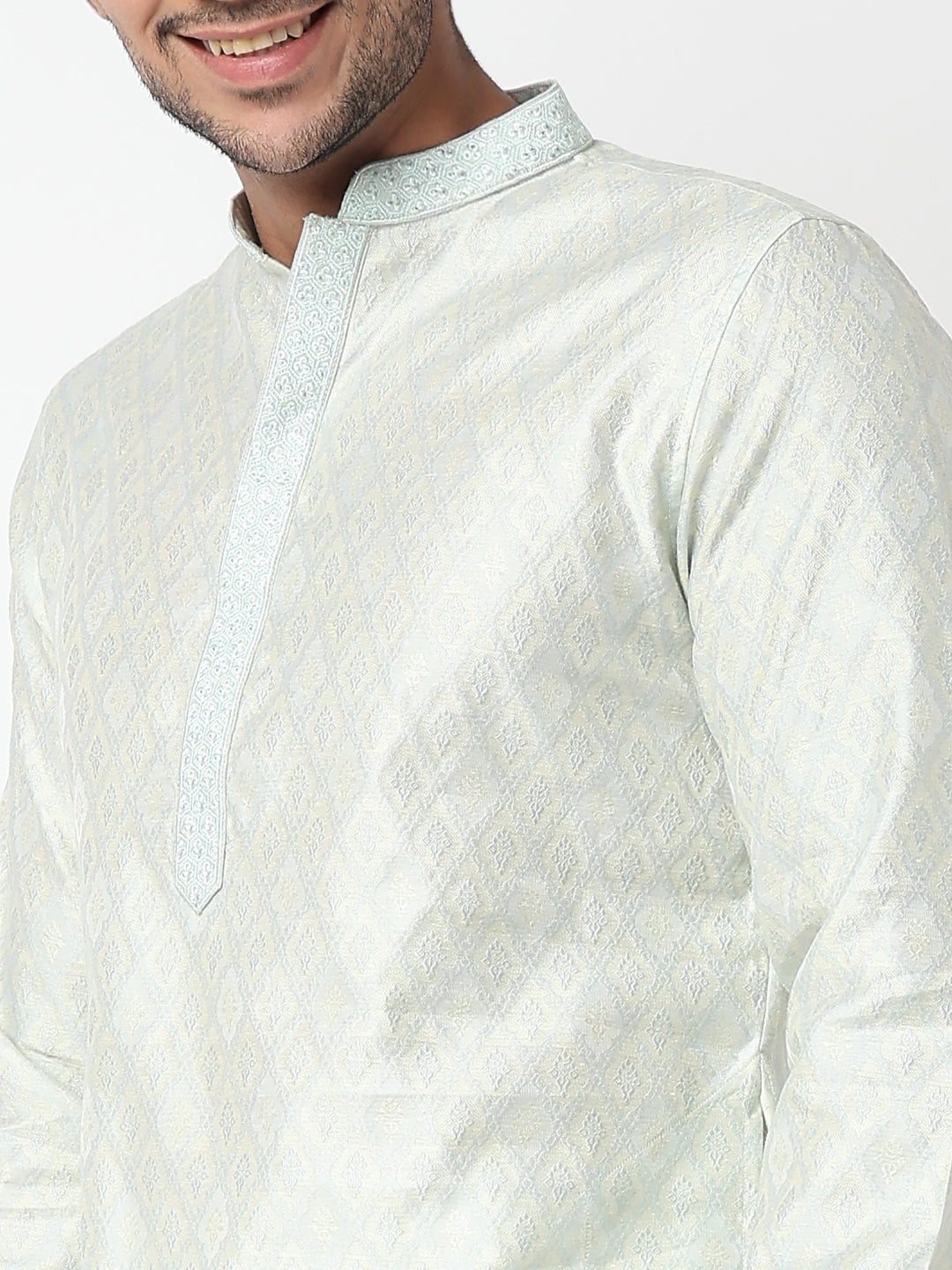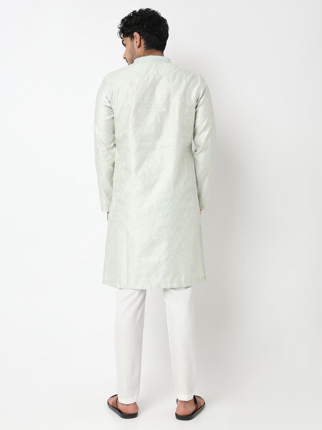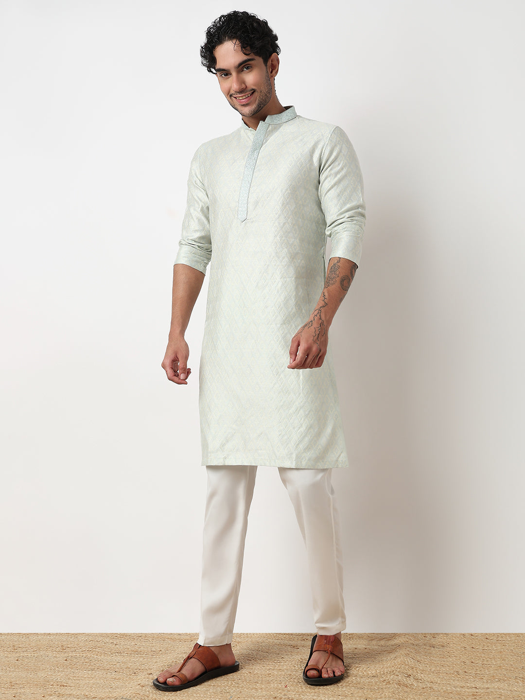 This jacquard pattern kurta has a mandarin collar and full sleeve. Made from polyester, it is soft and comfortable to wear.