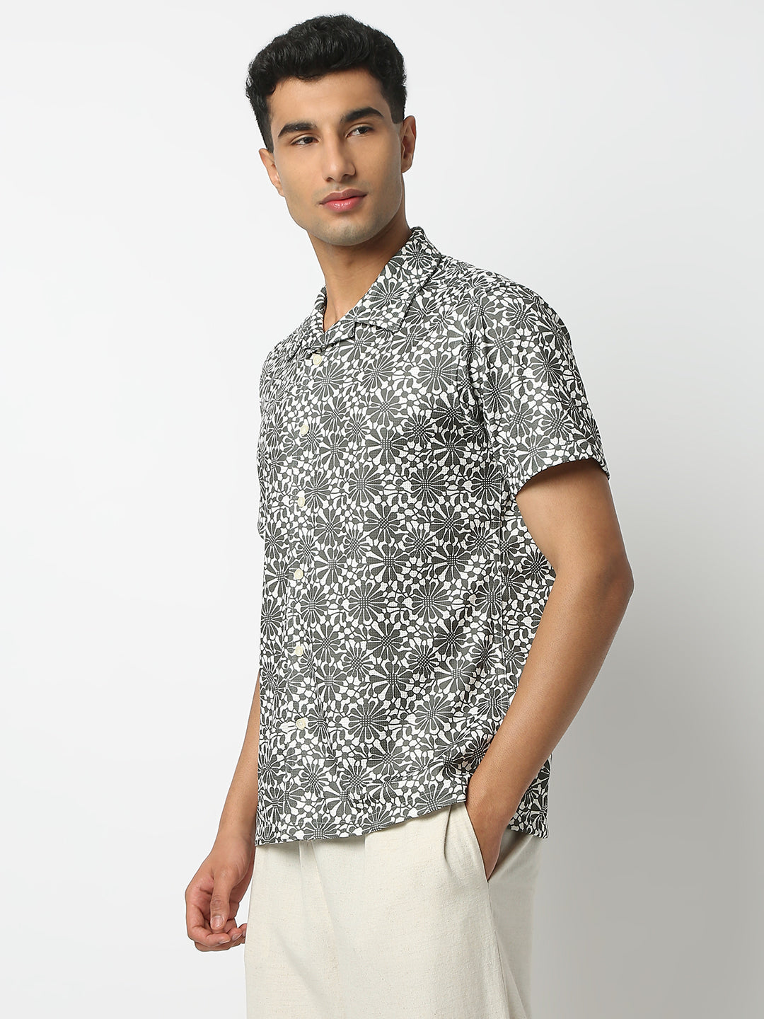 Relaxed Fit Digital Print Camp Collar Half Sleeve Shirt