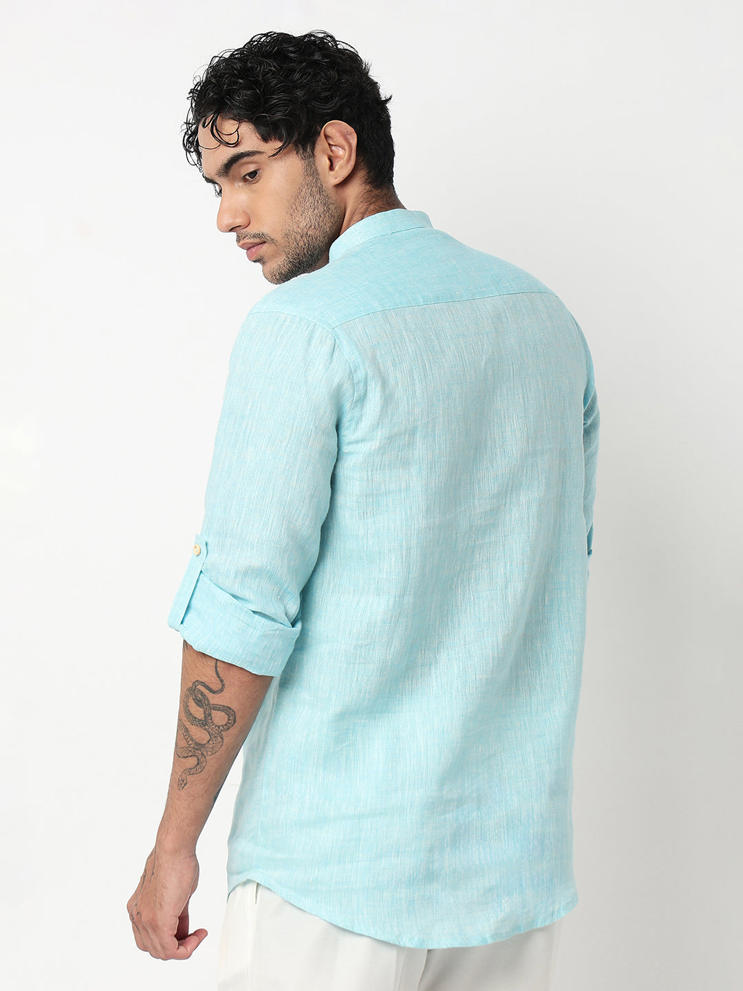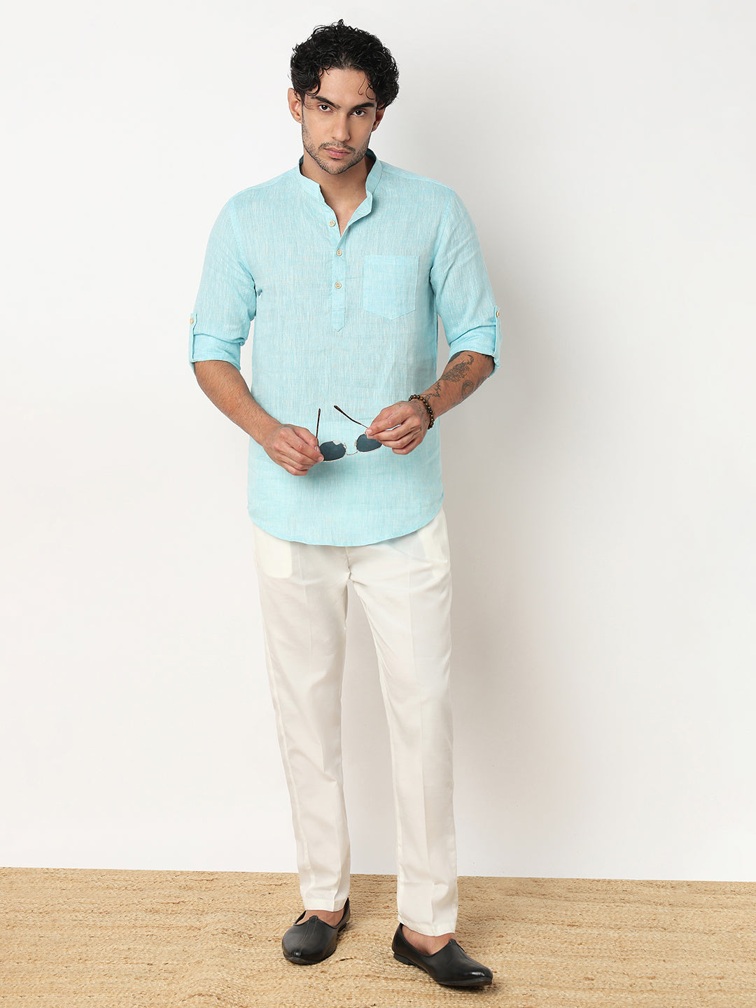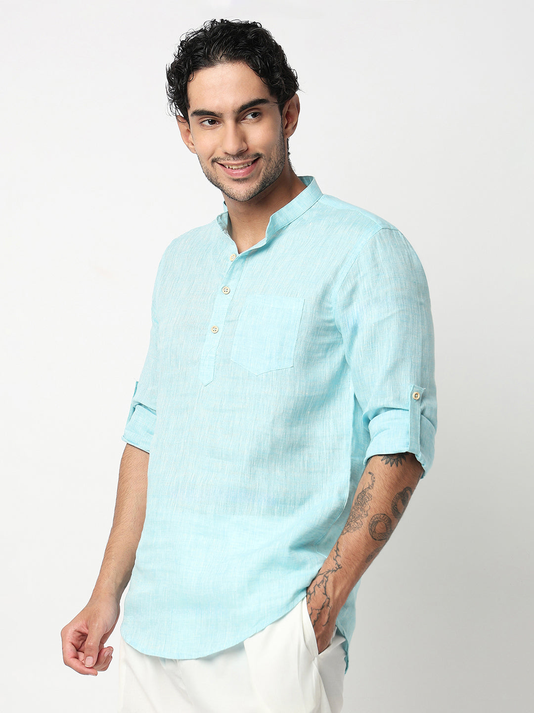 This solid pattern kurta has a mandarin collar and full sleeve. Made from linen cotton, it is soft and comfortable to wear.