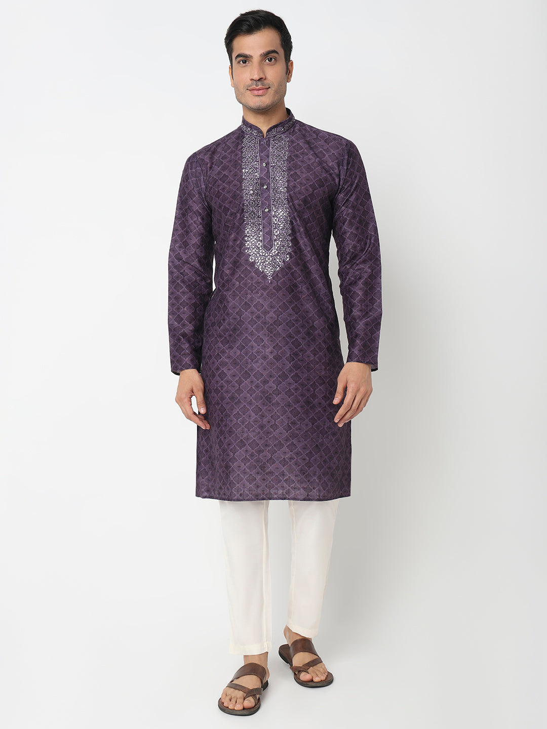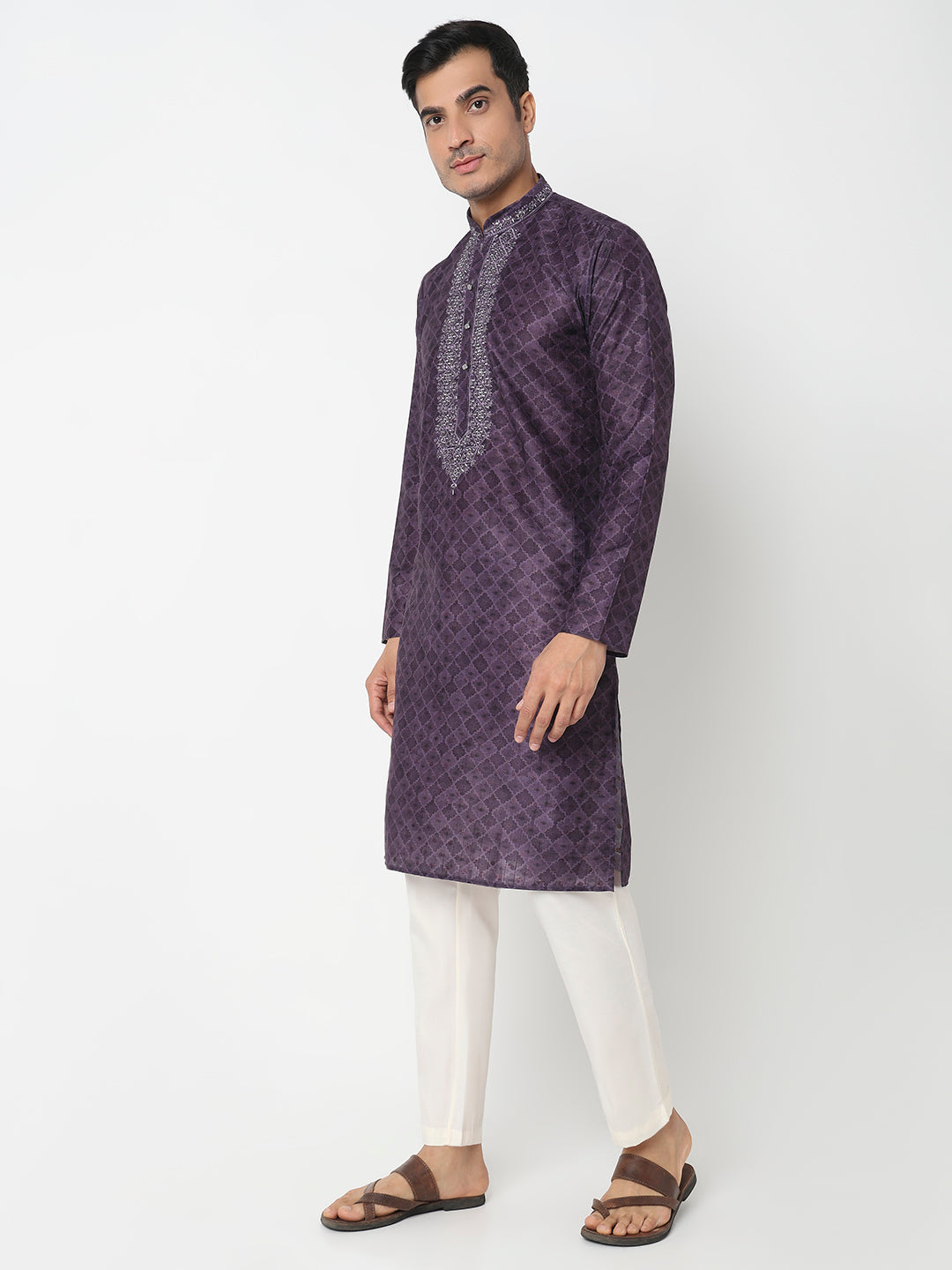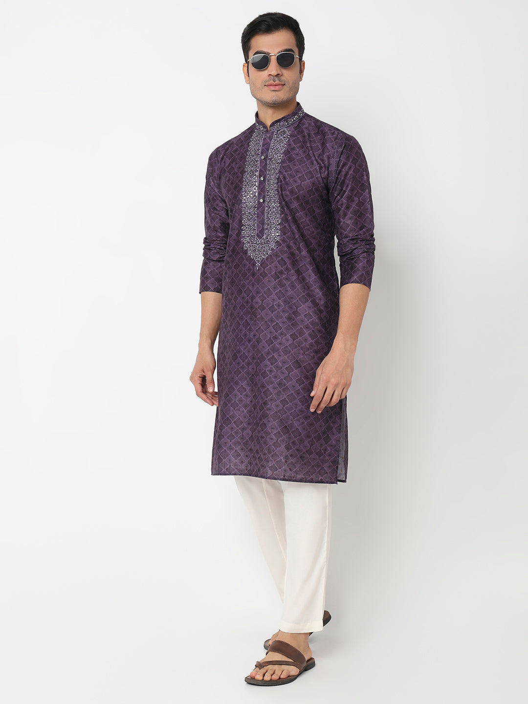 This digital print pattern kurta with pant set has a mandarin collar and full sleeve. Made from polyester, it is soft and comfortable to wear.