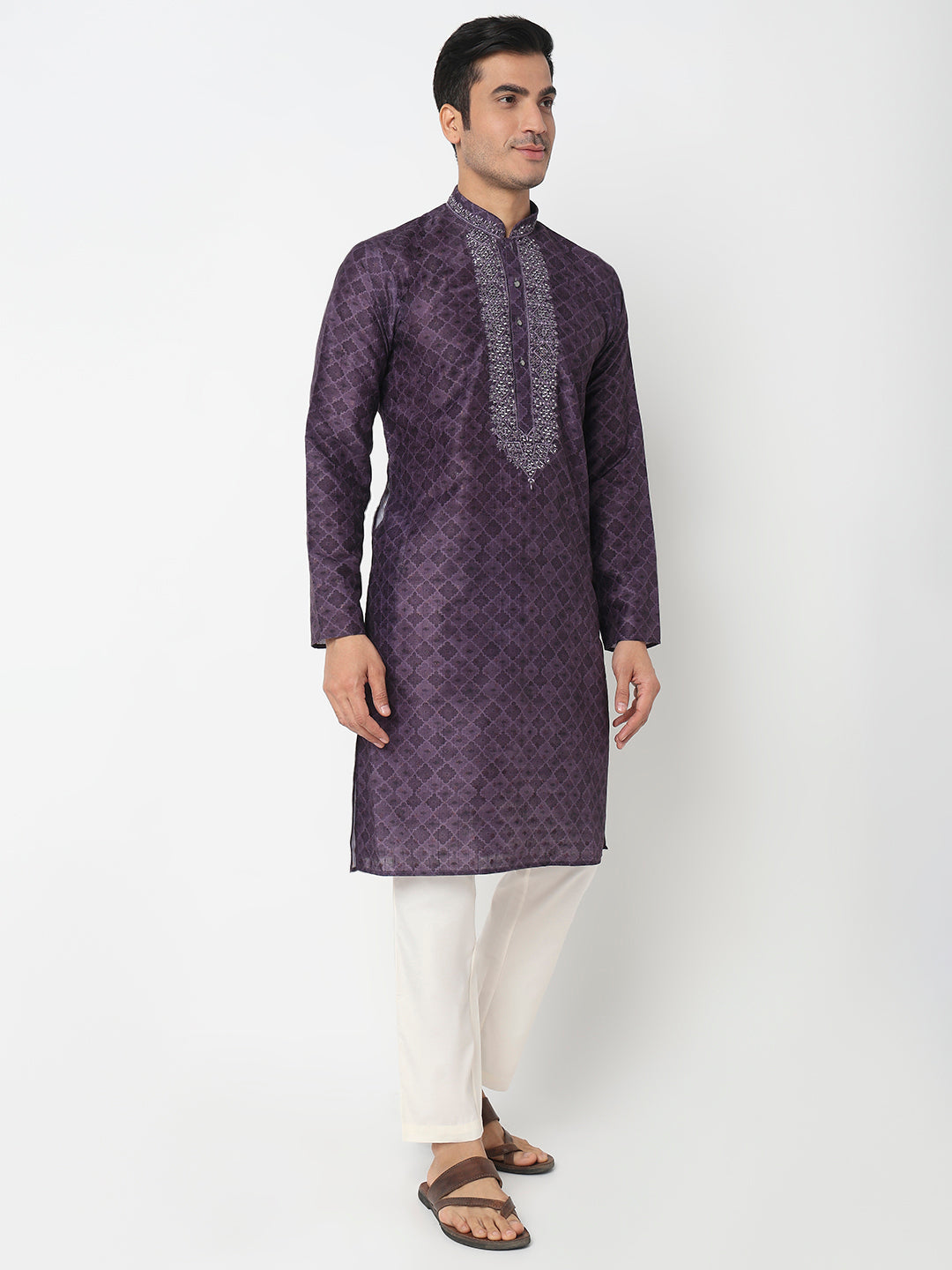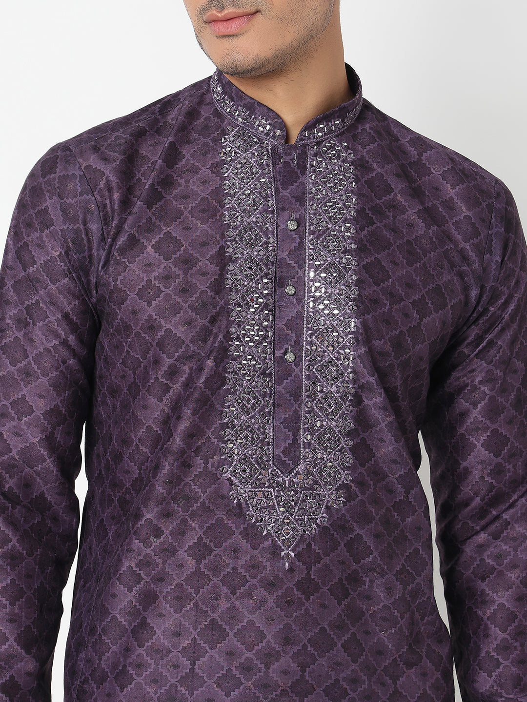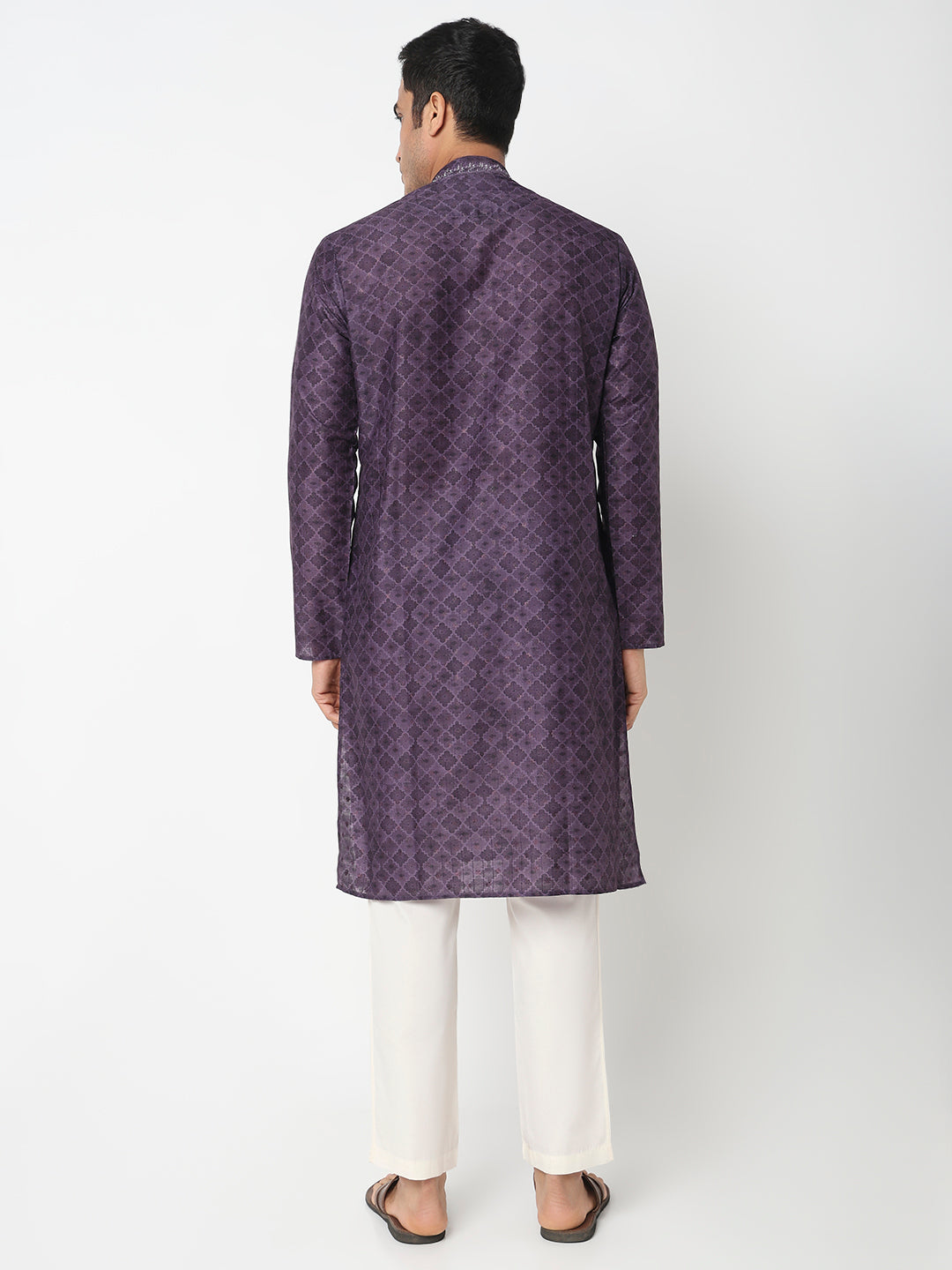 This digital print pattern kurta with pant set has a mandarin collar and full sleeve. Made from polyester, it is soft and comfortable to wear.