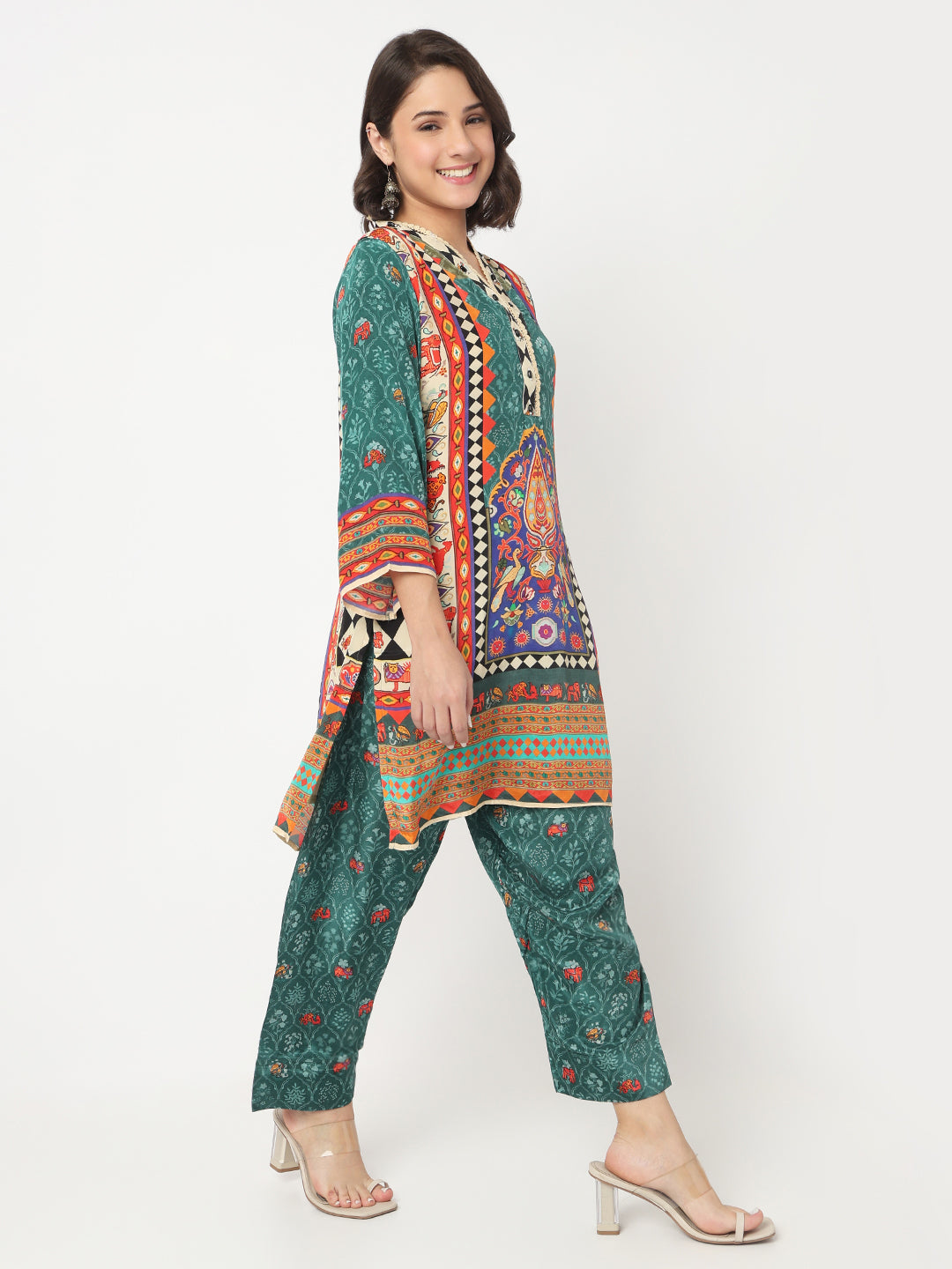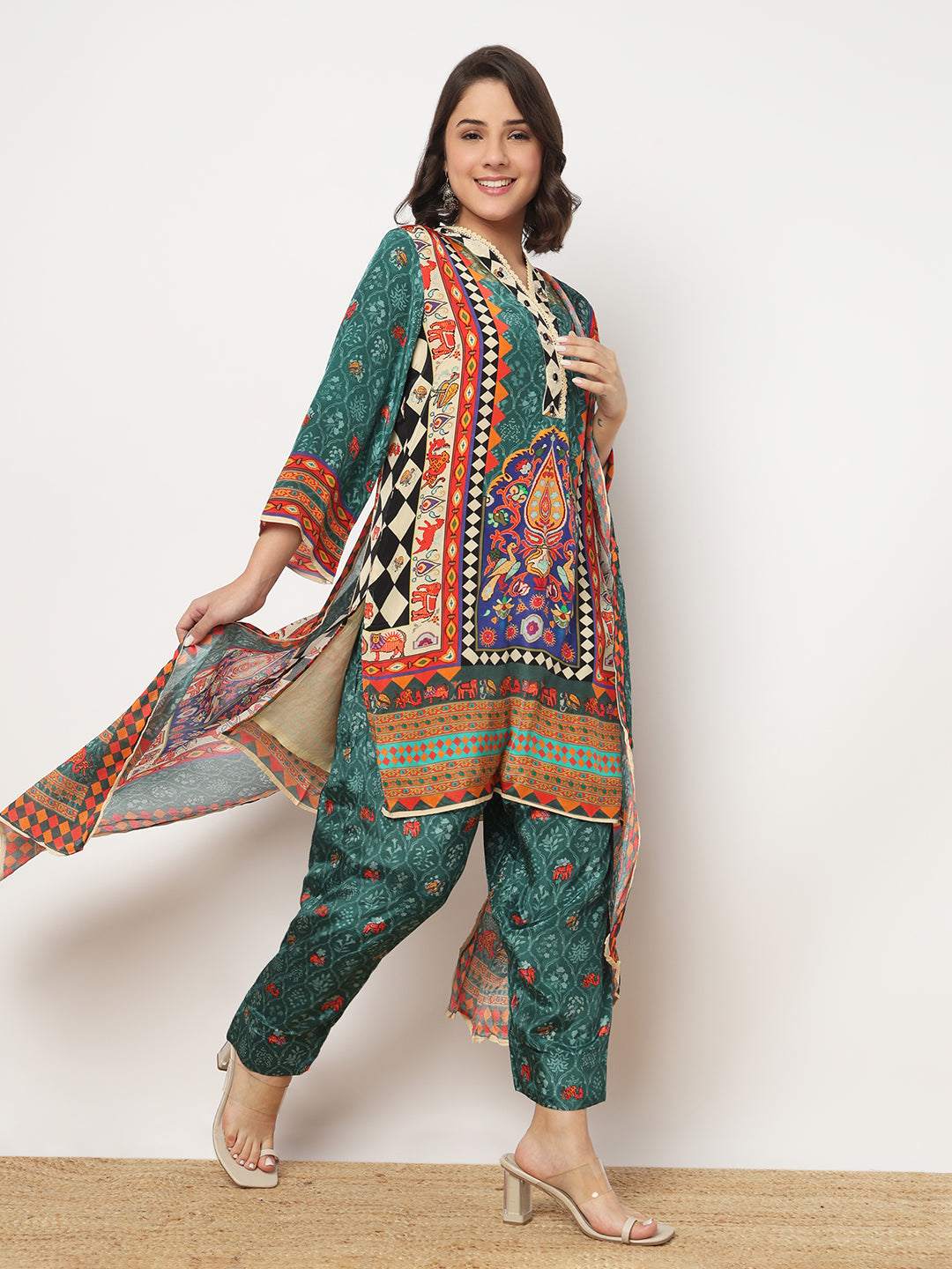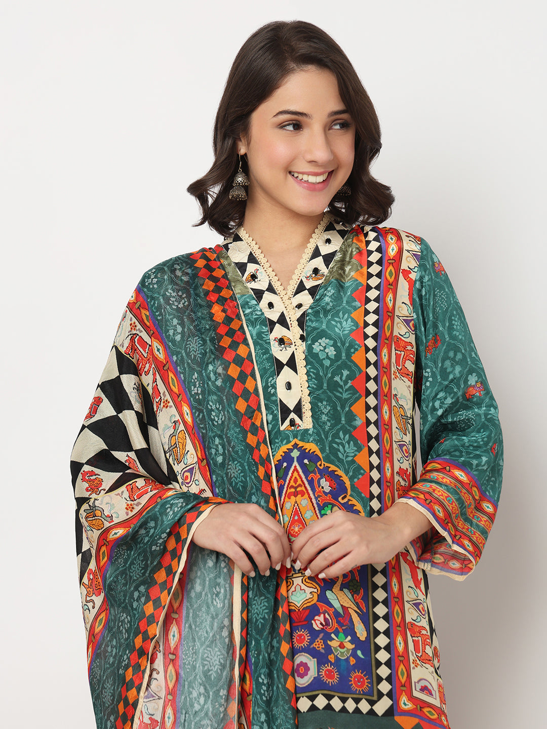 V-Neck Printed A-Line Kurta and Salwar with Dupatta Set