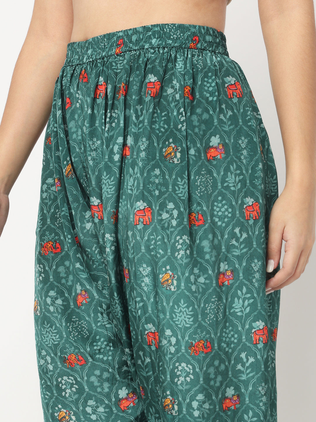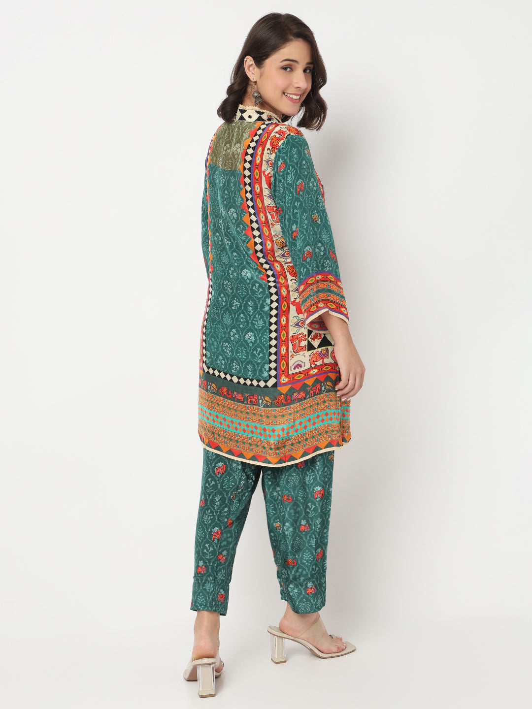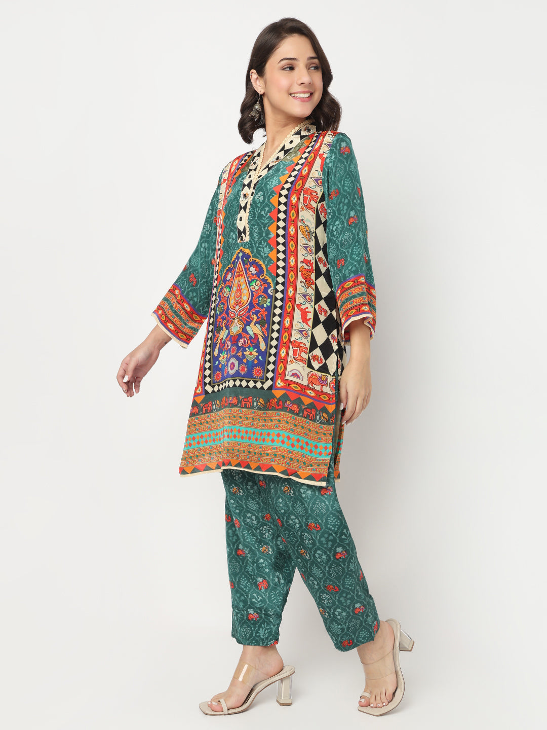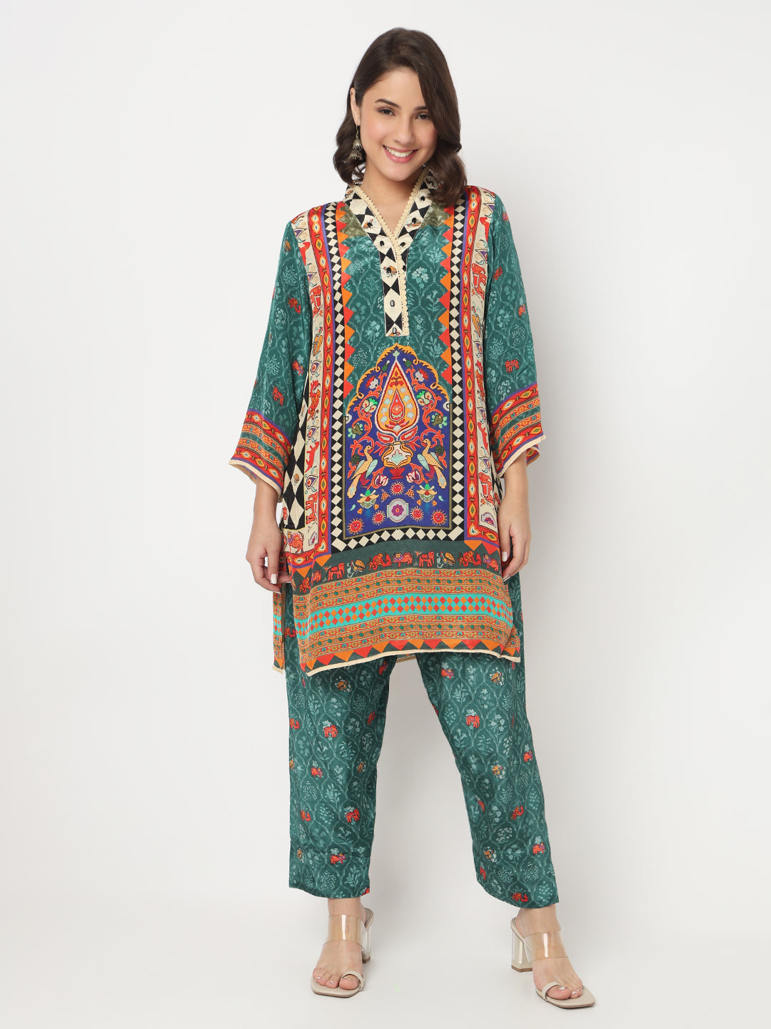 V-Neck Printed A-Line Kurta and Salwar with Dupatta Set